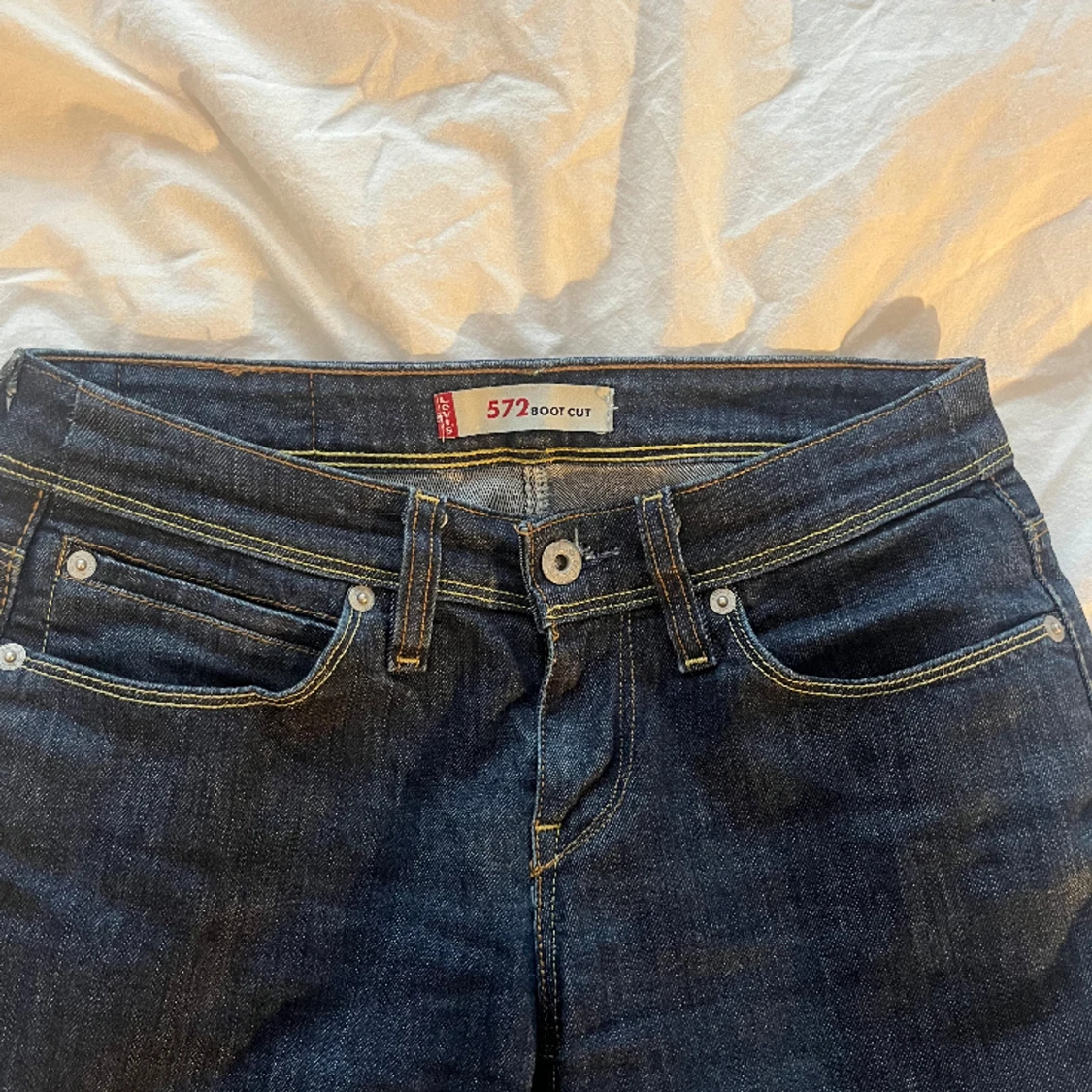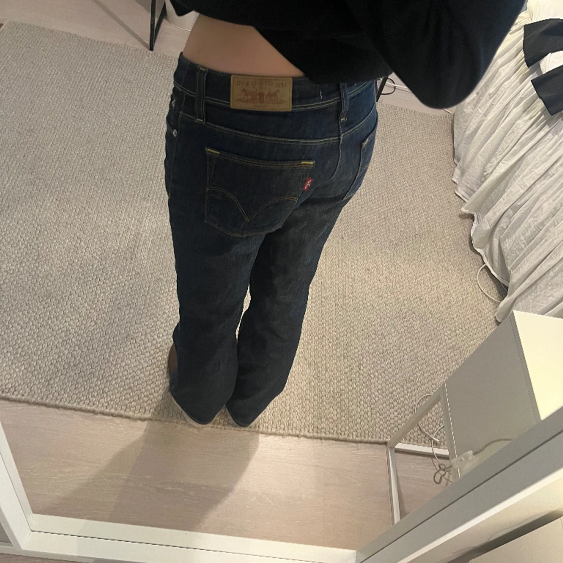 Säljer dessa supersnygga lågmidjade Levi’s jeansen. Jag är 172cm. Midja:35. Total längd:98cm I modellen 572 bootcut💕🙌🏻