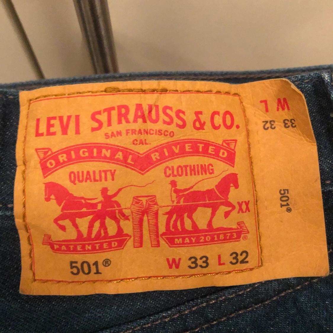 Vida Levis jeans i modell 501, unik fräsch färg. Fitpic kan fixas om någon vill ha det. Storlek w33 l32