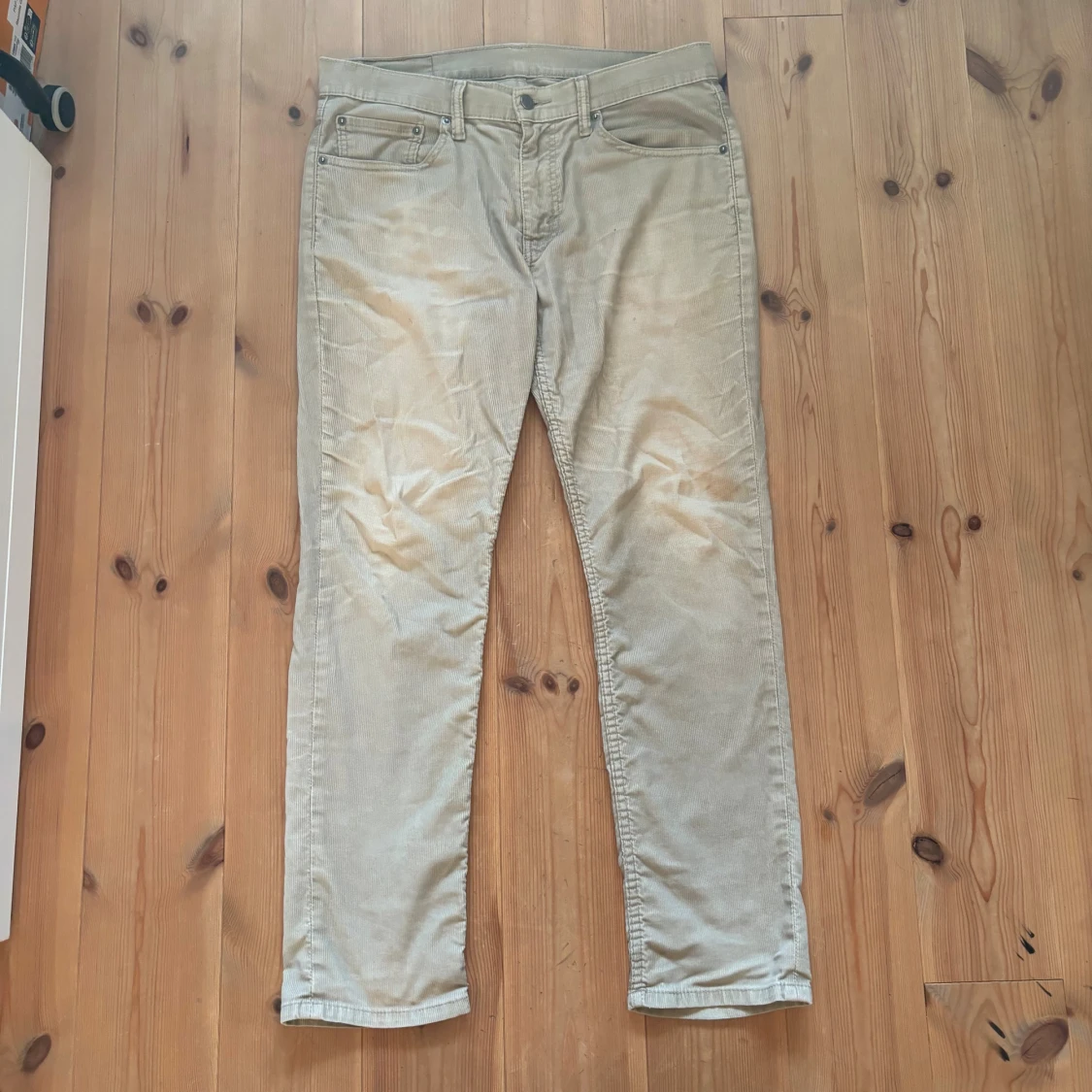 Levi’s manchester byxor i bra men synligt använt skick. De har inga skavanker bortsett från blekning i solen(gör dem enligt mig snyggare) byxorna har en slim/straight fit och är i storlek W32 L30. Mått: midja 43cm, längd 101cm, benöppning 18cm. Kontakta vid frågor och pris kan diskuteras!