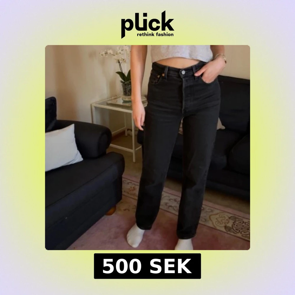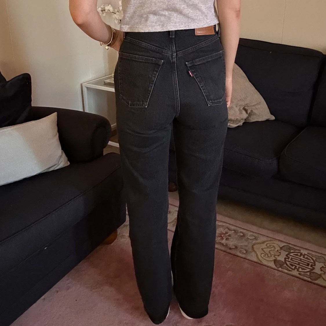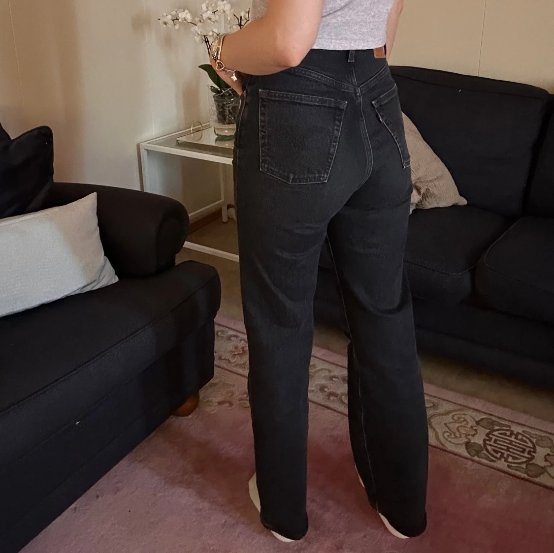 Snygga svarta Levis 501 jeans med hög midja och raka ben. Klassisk femficksmodell i jeansmaterial, perfekt för en clean och tidlös look. Passformen är normal och de har en enkel knapp- och dragkedjestängning framtill.