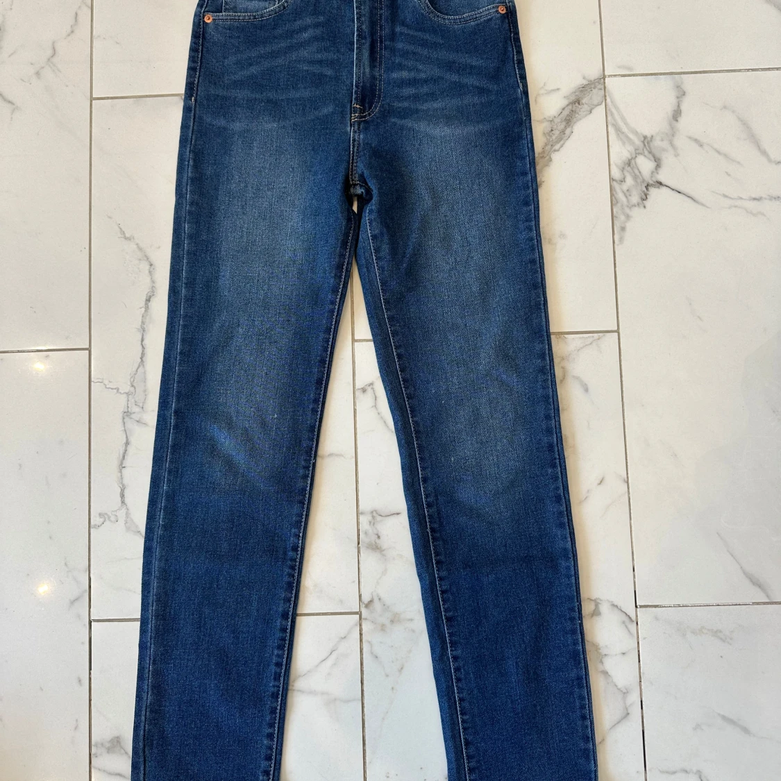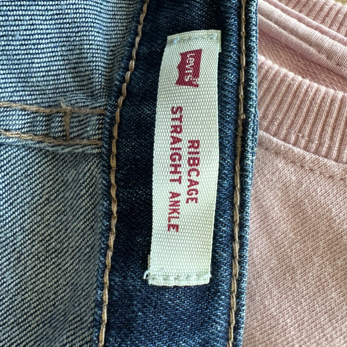 Snygga Levi's Ribcage Straight Ankle jeans i klassisk blå denim. De har en hög midja och raka ben som ger en tidlös look. Perfekta för en avslappnad stil med en touch av vintagekänsla.