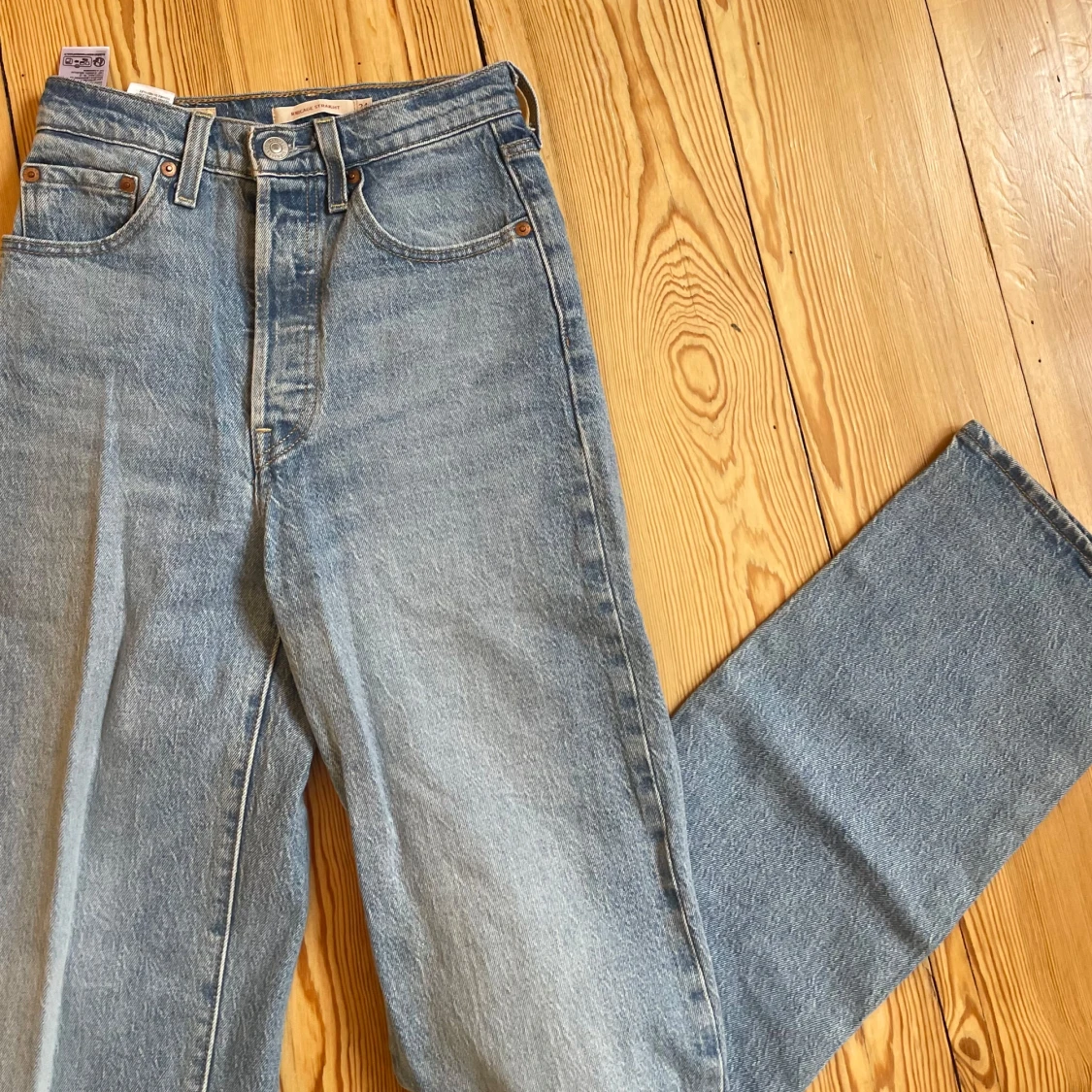 Ljusblå Levi's Ribcage Straight jeans med hög midja och raka ben. Lång benlängd. (24/34). Använda en gång. Nypris ca 1200kr. Klassisk femficksmodell i jeansmaterial med snygg vintagekänsla. Perfekta för dig som gillar en clean och tidlös look.