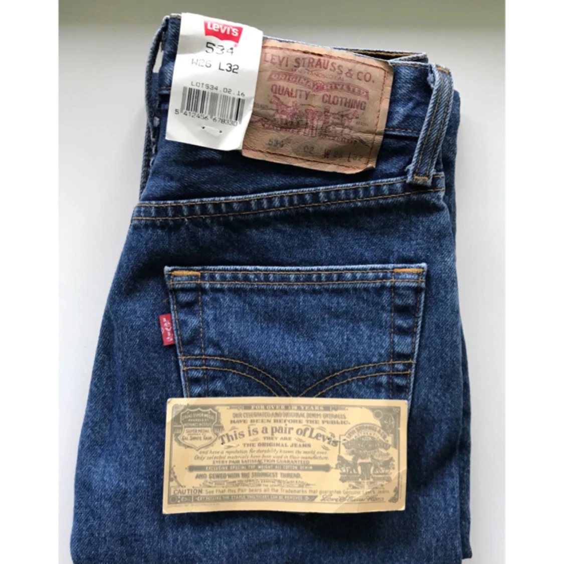 Helt nya, jättefina Levis 534, köpte de här på plick men säljer vidare då de var för småa. Betalning sker via swish och köparen står för frakten.
