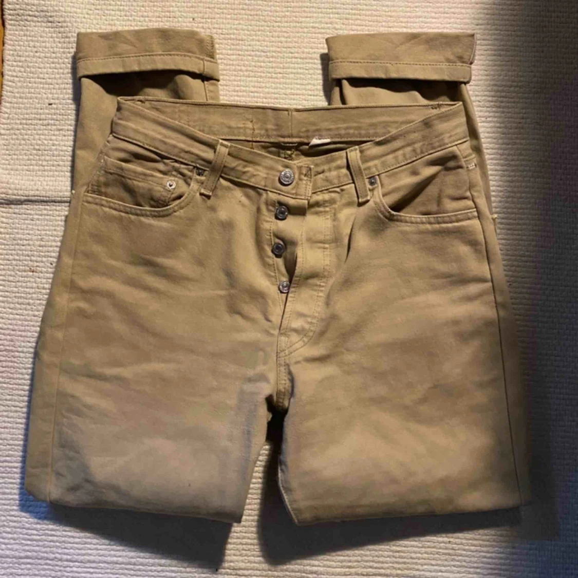 Ett par beiga Levi’s jeans som är vintage. Säljer dessa då dom är för små för mig. W27 L32. Köparen står för frakt:)