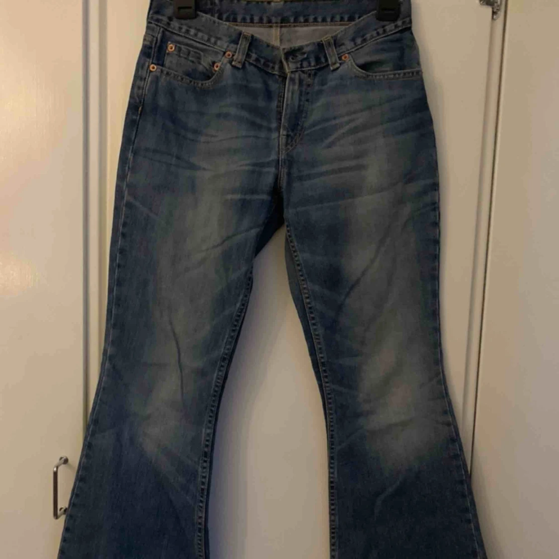 Blå Levi’s jeans med lågmidja och väldigt vida. Inget fel med dem förutom att märkeslappen är lite sliten som man ser på sista bilden.