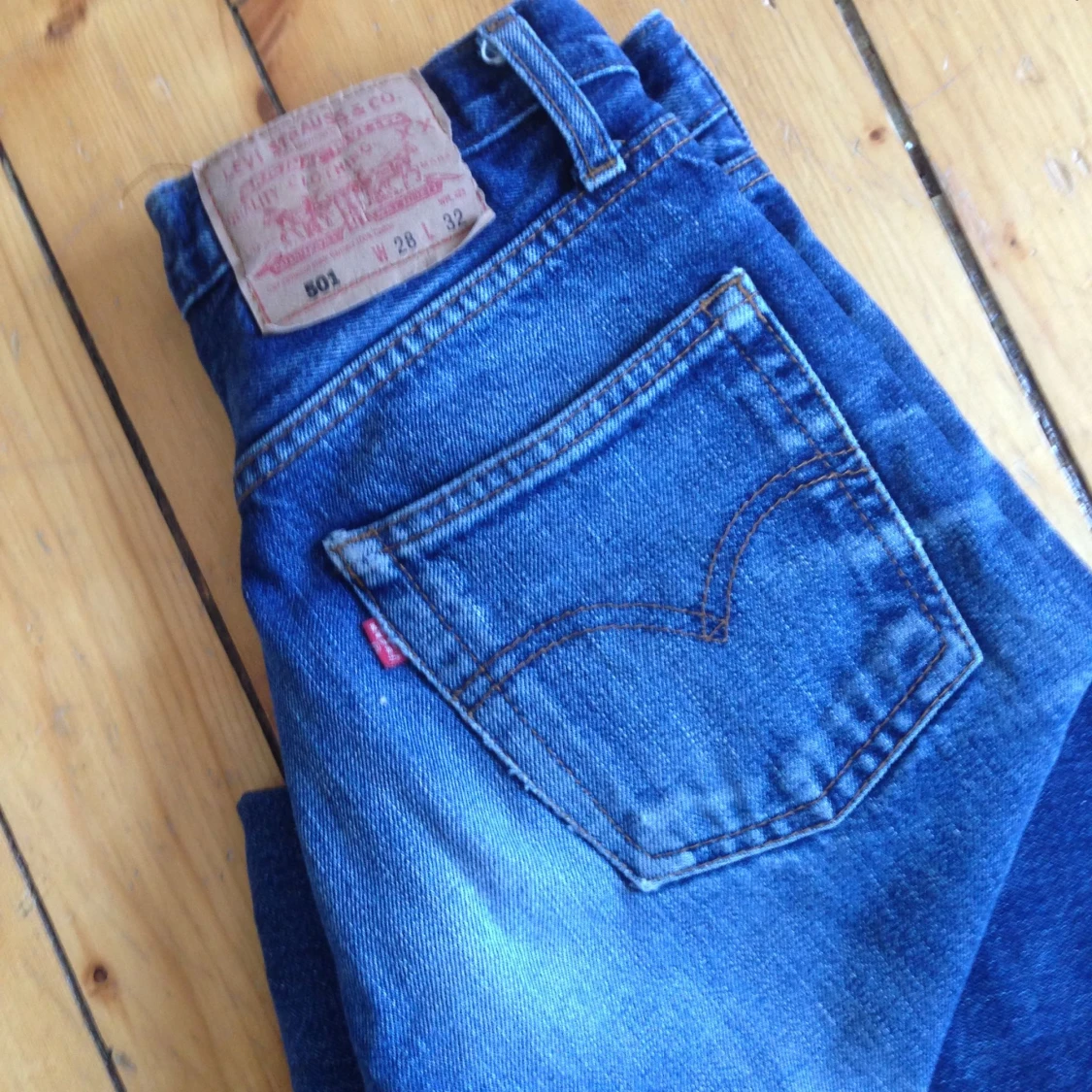 Skitsnygga 501:or i sliten blå tvätt från second hand i Amsterdam. Säljer pga för små i höfterna!
