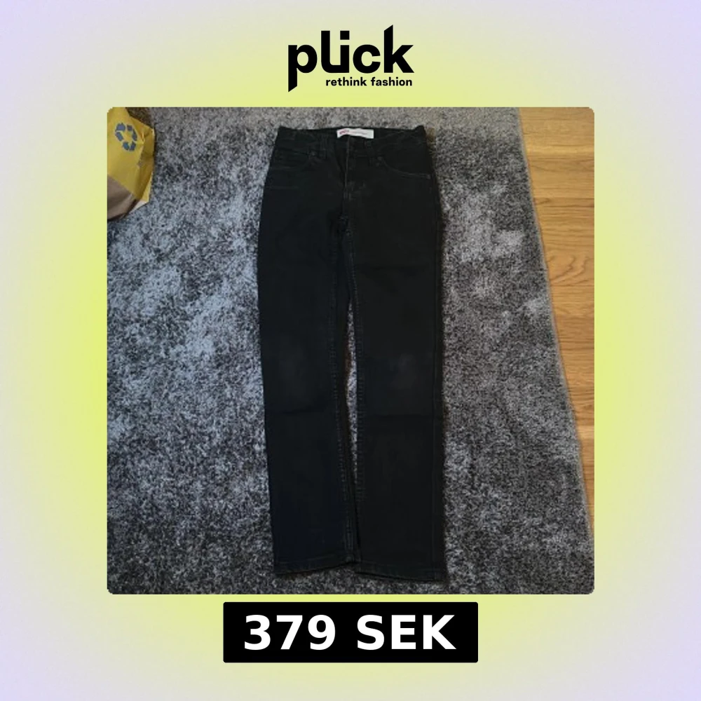 Snygga svarta jeans från Levi's med klassisk femficksdesign och en diskret logga på bakfickan. Perfekta för en stilren look.