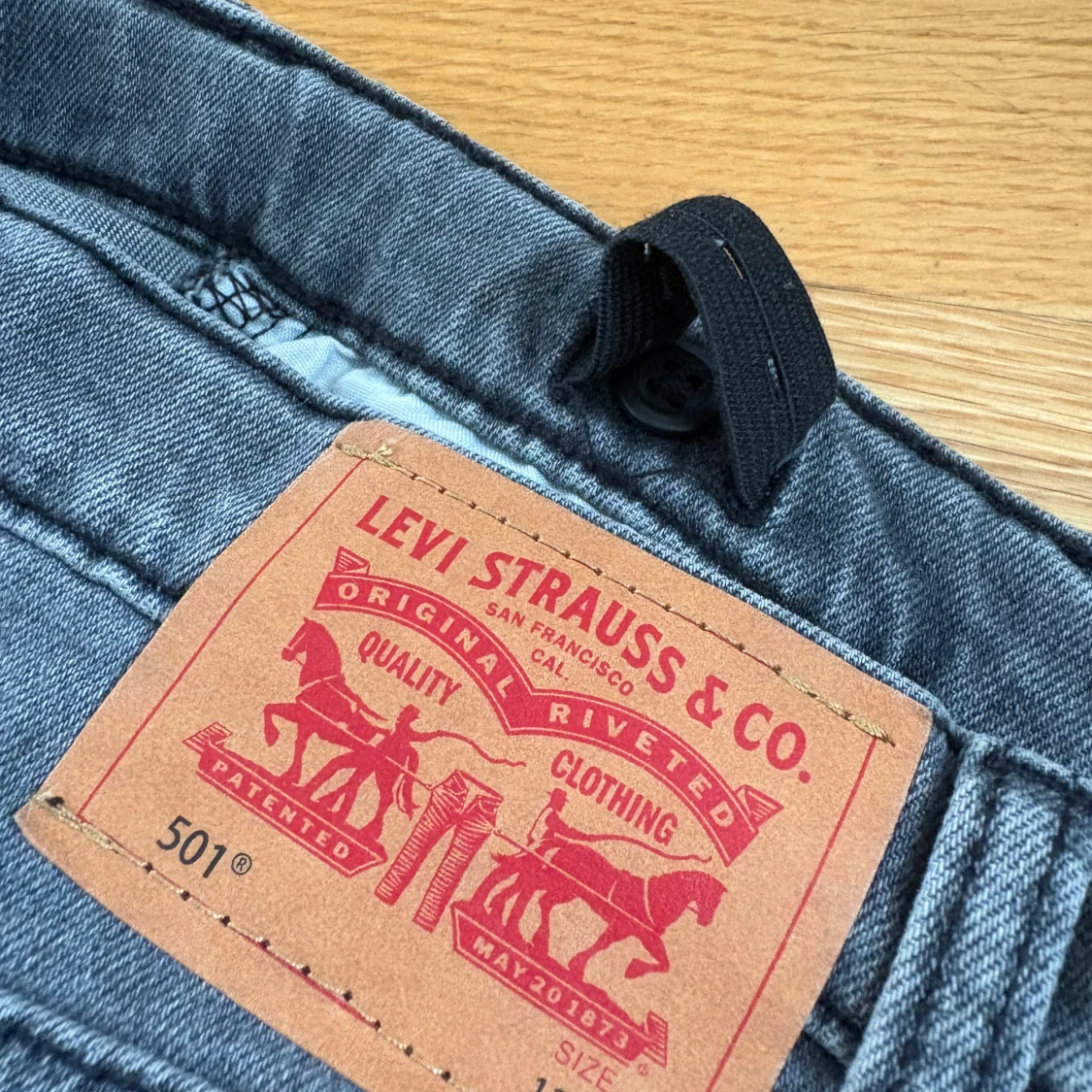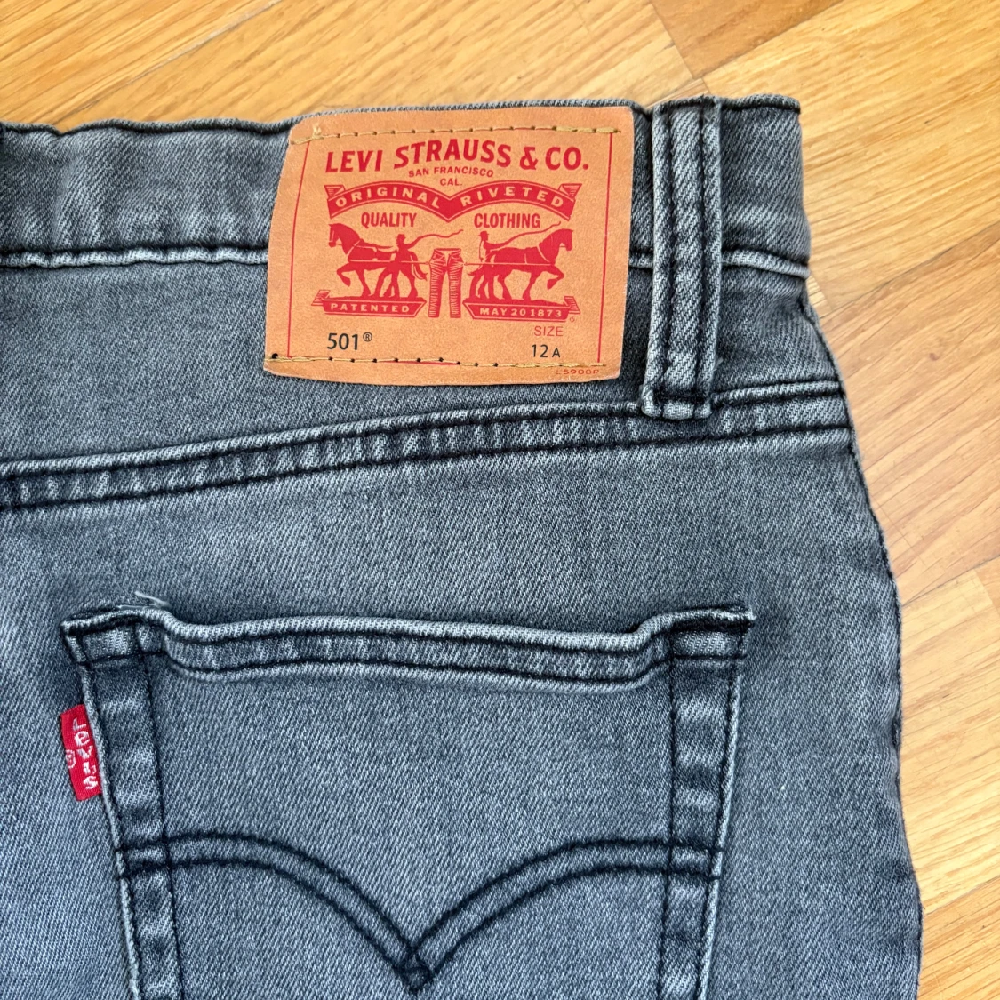 Säljer ett par grå Levi’s 501 jeans med straight fit, storlek 12A, Endast använda 1 gång, köpta på KidsBrandStore
