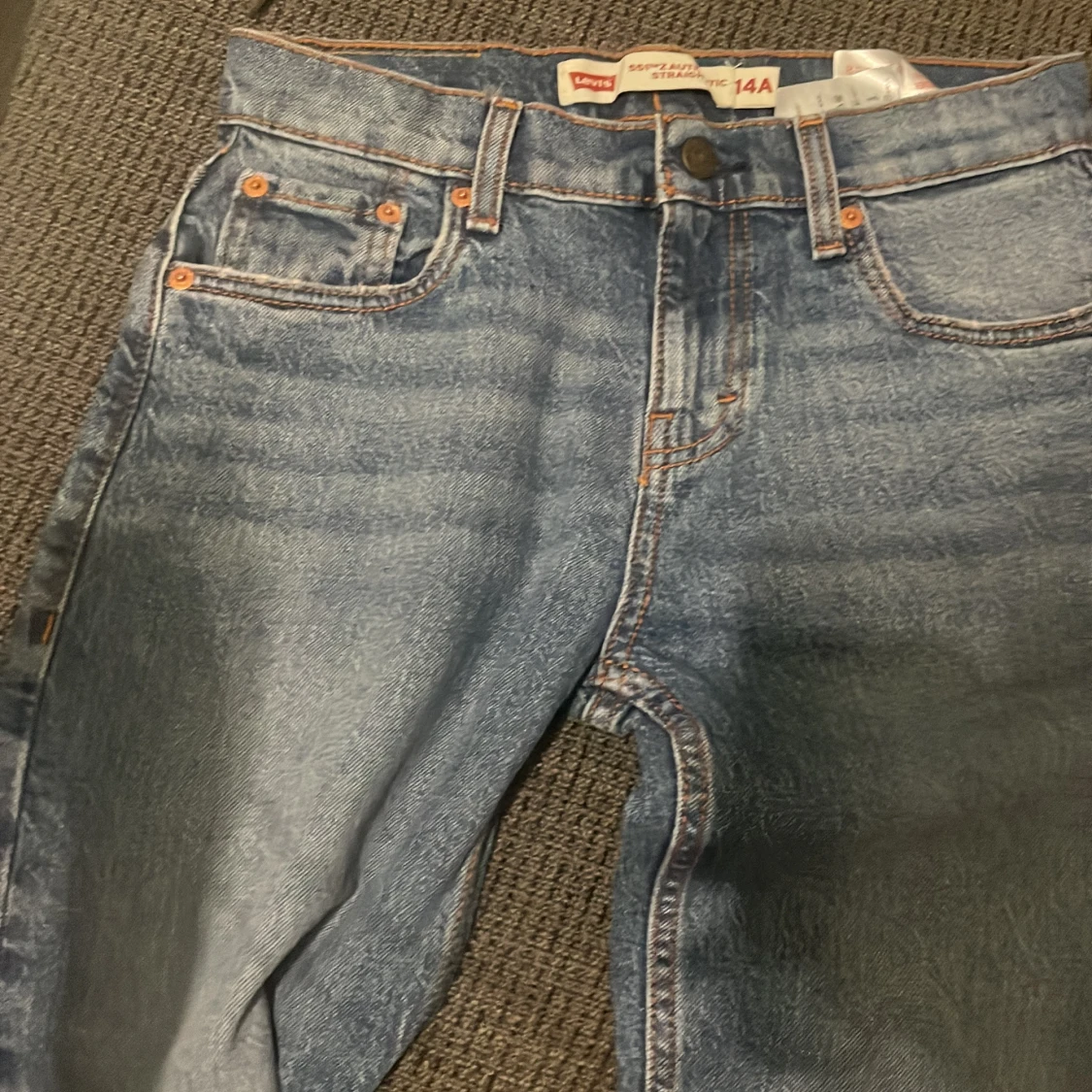 Snygga Levi's 551™Z Auth Straight jeans i klassisk blå tvätt med raka ben och orange kontrastsömmar. Modellen har fem fickor, bälteshällor och ikonisk Levi's patch bak. Perfekt för dig som gillar en tidlös och chill look.