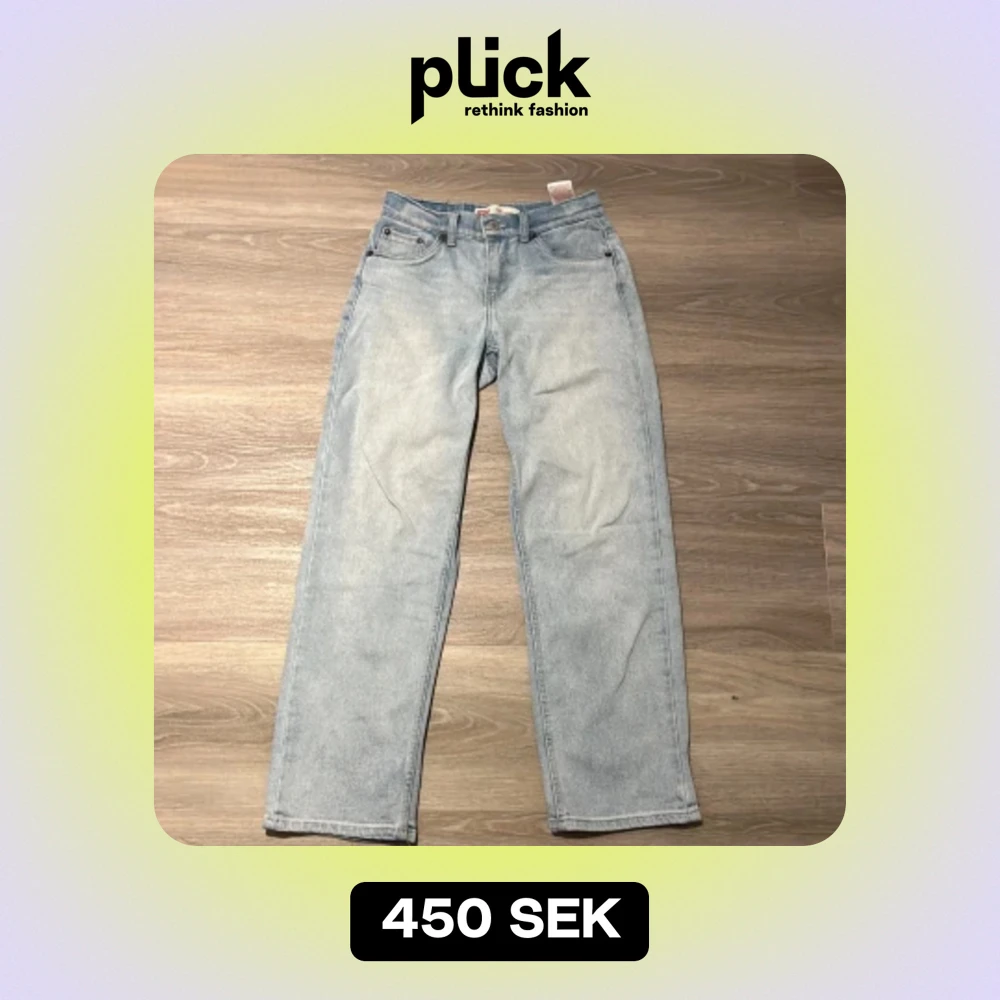 Säljer ett par ljusblå Levi's jeans i väldigt bra skick. De har en avslappnad passform med raka ben. Märkeslappen är lite sliten. Storlek 164 cm. Skriv vid några funderingar!
