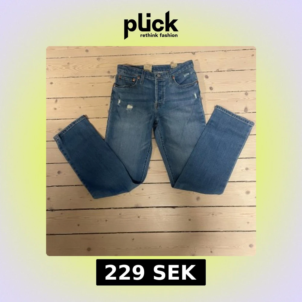 Klassiska blå Levis 501 jeans med raka ben och knappgylf. Jeansen har en vintage look med lätt slitna detaljer framtill och femficksdesign. Perfekta för en avslappnad och tidlös stil. Pris kan diskuteras vid snabb affär.