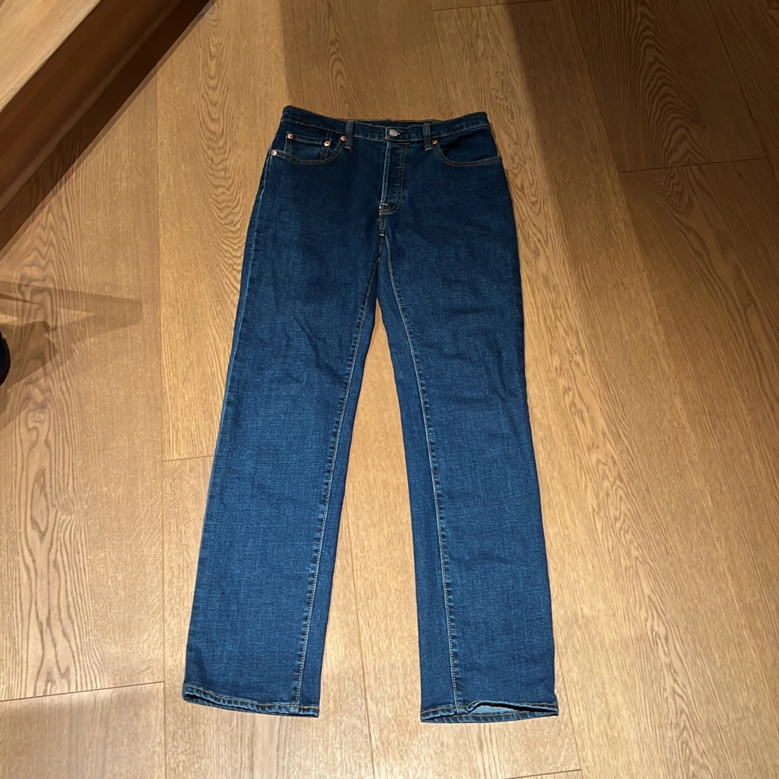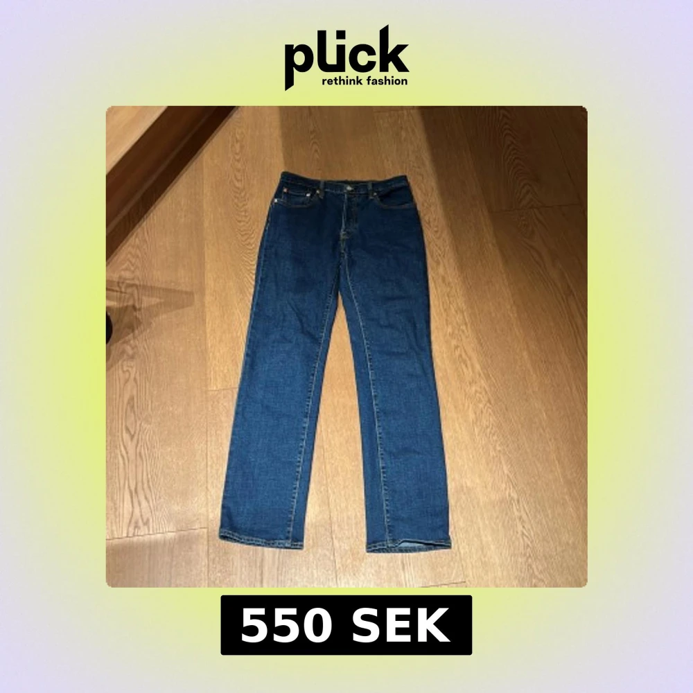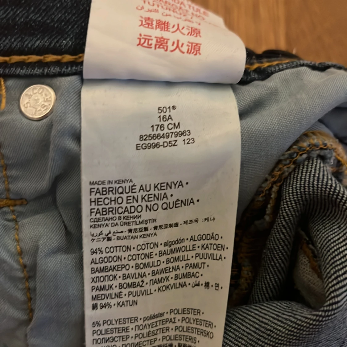 Klassiska Levi's 501 jeans i mörkblå tvätt med straight fit och normal passform. Byxorna har fem fickor, knappgylf och snygga kontrastsömmar. Helt nya har it använt dem en ända gång! Strorleken är 16a/176 cm