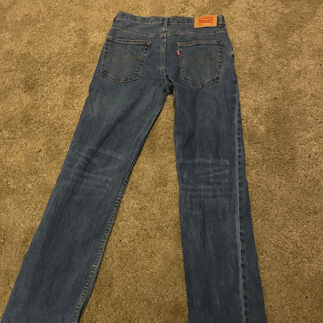 Säljer ett par klassiska blå jeans i bra skick. De har en straight passform och är perfekta för vardagsbruk. Perfekta för både höst och vår!