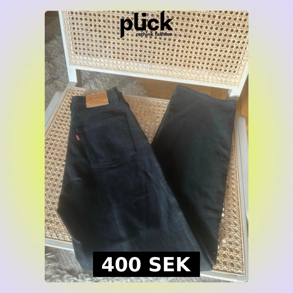 Säljer ett par svarta Levi's Ribcage Straight Ankle jeans i storlek 26. De har hög midja, raka ben och klassisk femficksdesign. Materialet är 97% bomull, 2% polyester och 1% elastan för lite stretch. Perfekta till sneakers eller boots. Aldrig använda pga köpte del storlek.