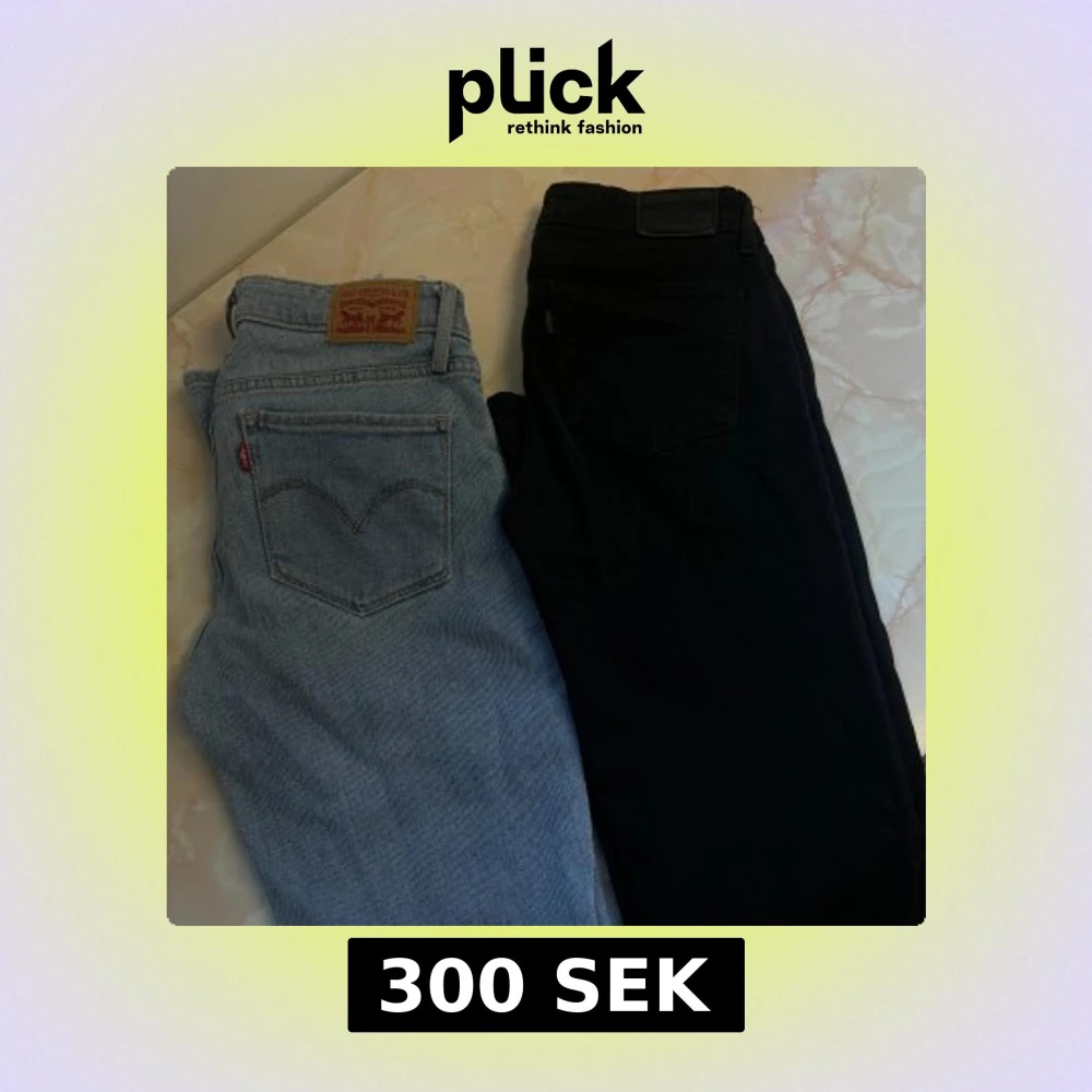 Två par Levi's 715 Bootcut jeans i storlek 26. Ett par är klassiskt ljusblåa och det andra paret är svarta. Båda har femficksdesign, normal passform och bootcut-ben. Tillverkade i jeansmaterial med snygg midja och ikonisk Levi's-lapp bak. För små där av säljer. Passar mig dock i längden och är 1,63 cm. Pris går att diskutera
