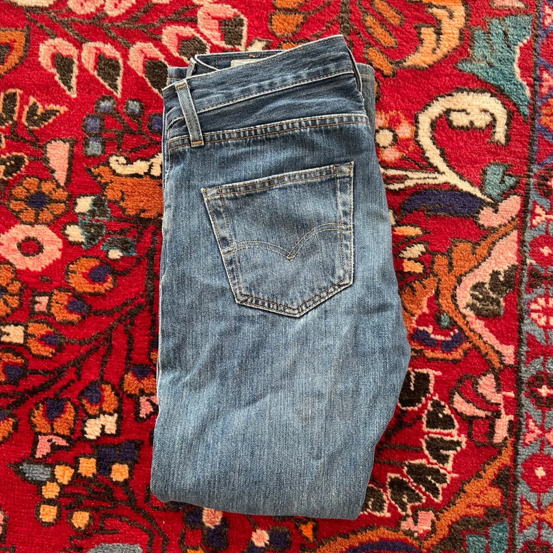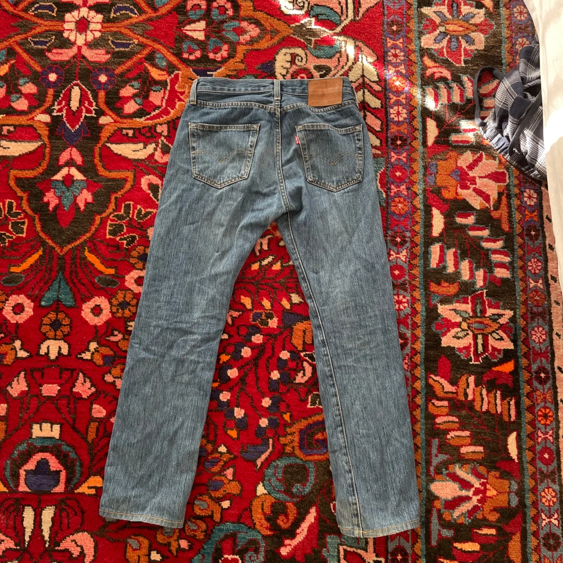 Snygga blå Levis 501 med klassisk femficksdesign och knappgylf. Perfekta för en avslappnad stil. De har en rak passform och är tillverkade i slitstarkt denim.