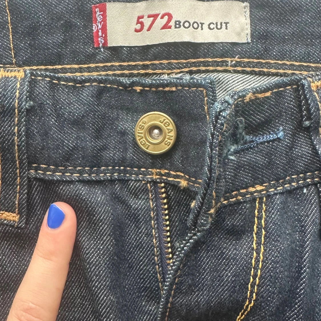 Mörkblå Levi's 572 Bootcut jeans med klassiska kontrastsömmar och femficksdesign. Snygg bootcut-modell som ger en schysst siluett och passar perfekt till sneakers eller boots. Tillverkade i slitstarkt denim med dragkedja och knapp framtill.