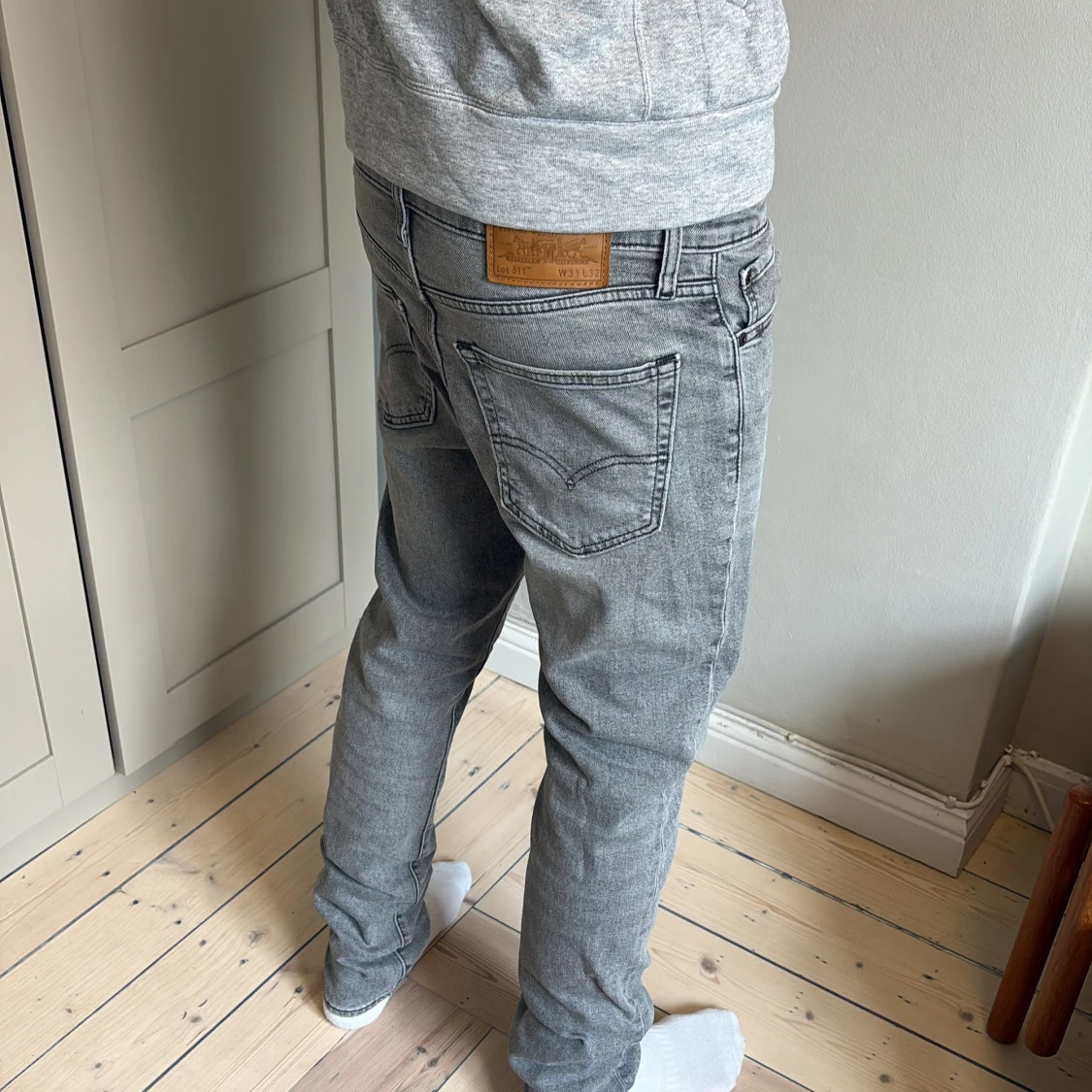 Snygga grå Levis 511 jeans med klassisk femficksdesign och raka ben. Jeansen har en normal passform och är tillverkade i mjukt denimtyg. Perfekta för dig som gillar en stilren look med lite edge.