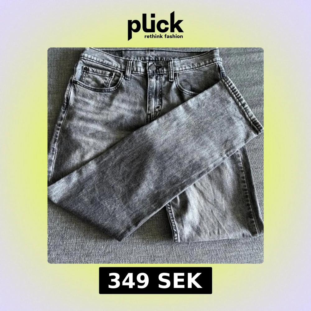 Säljer ett par gråa jeans med rak passform och klassisk femficksdesign. Jeansen har en snygg tvättad finish som ger en cool vintagekänsla. Tillverkade i mjukt jeanstyg och passar perfekt till en avslappnad stil. Hör av er vid intresse/ frågor!