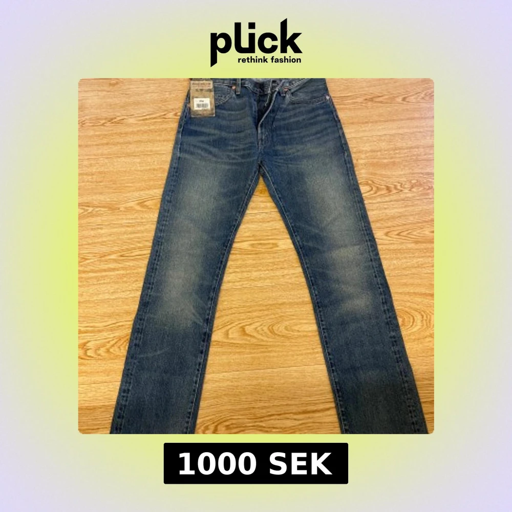 Säljer ett par klassiska Levi's 505 jeans i blå tvätt med vintagekänsla. Modellen har rak passform, normal midja och snygga slitningar framtill. Jeansen är gjorda i 100%. Midja: 36cm Benlängd:86cm Längd på hela: 115cm Fotvidd: 18,5cm