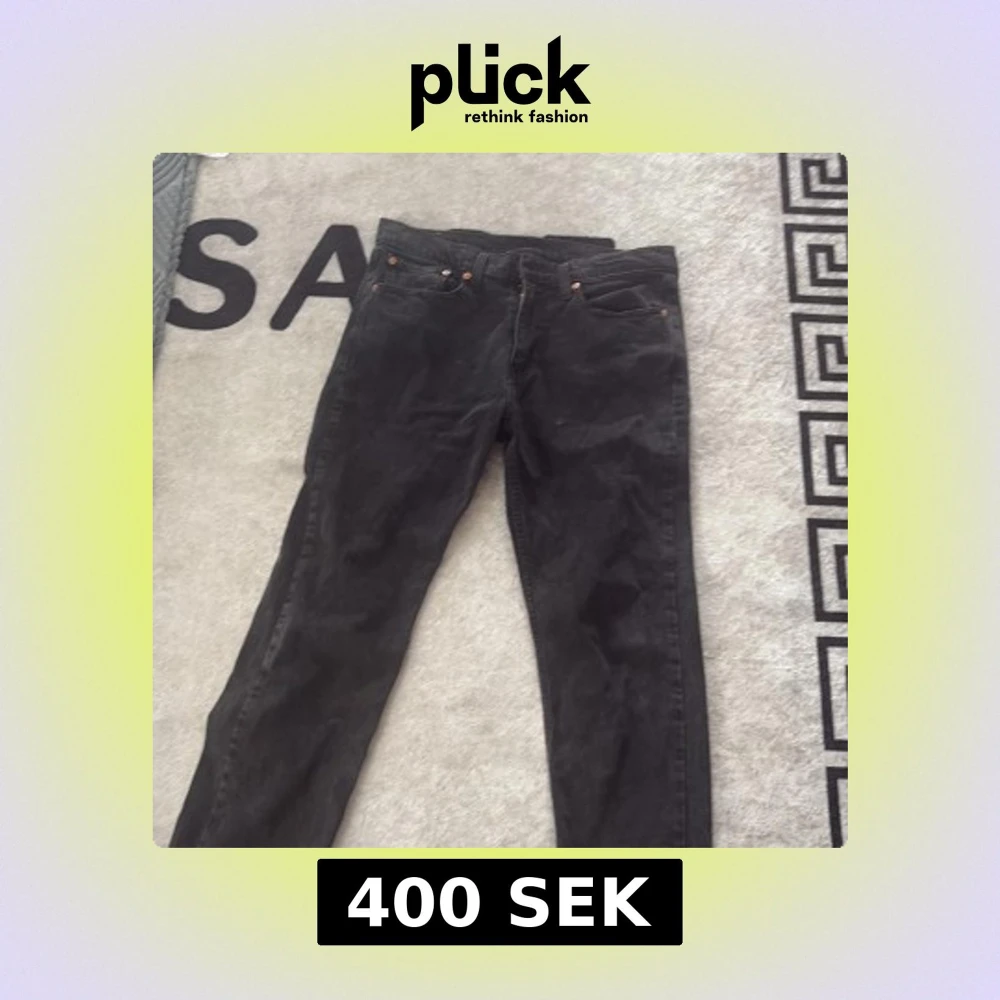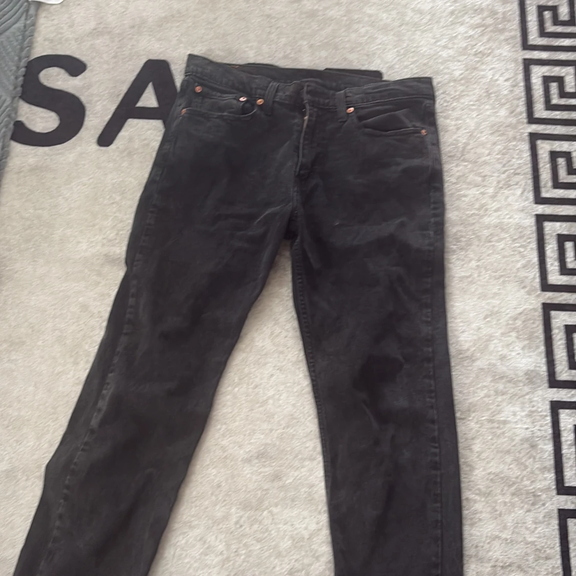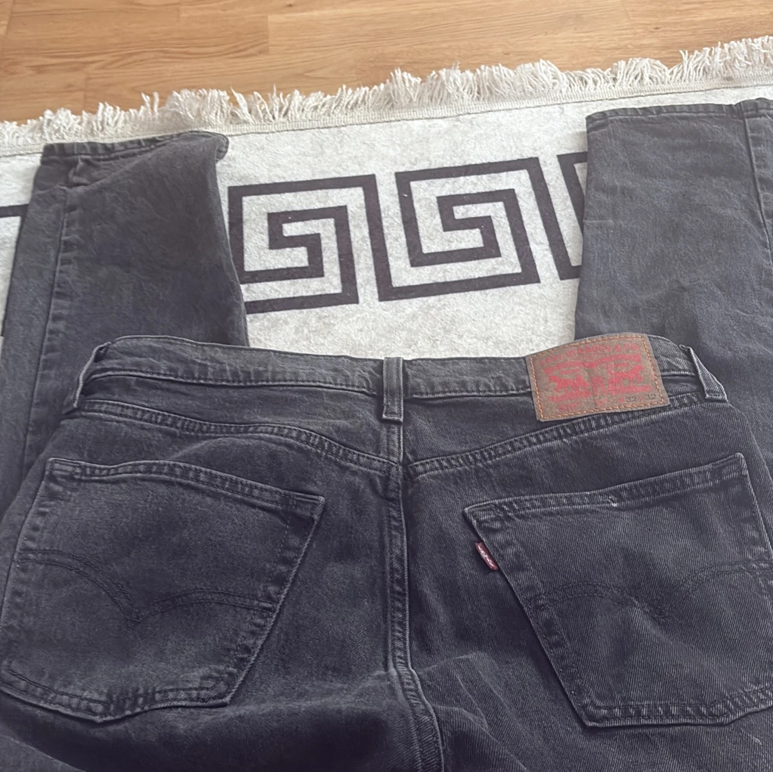 Säljer ett par svarta Levi's 501 jeans med klassisk straight fit. Jeansen har fem fickor, knapp och dragkedja framtill samt den ikoniska läderpatchen bak. Tillverkade i bomull och passar perfekt till en avslappnad streetstil.