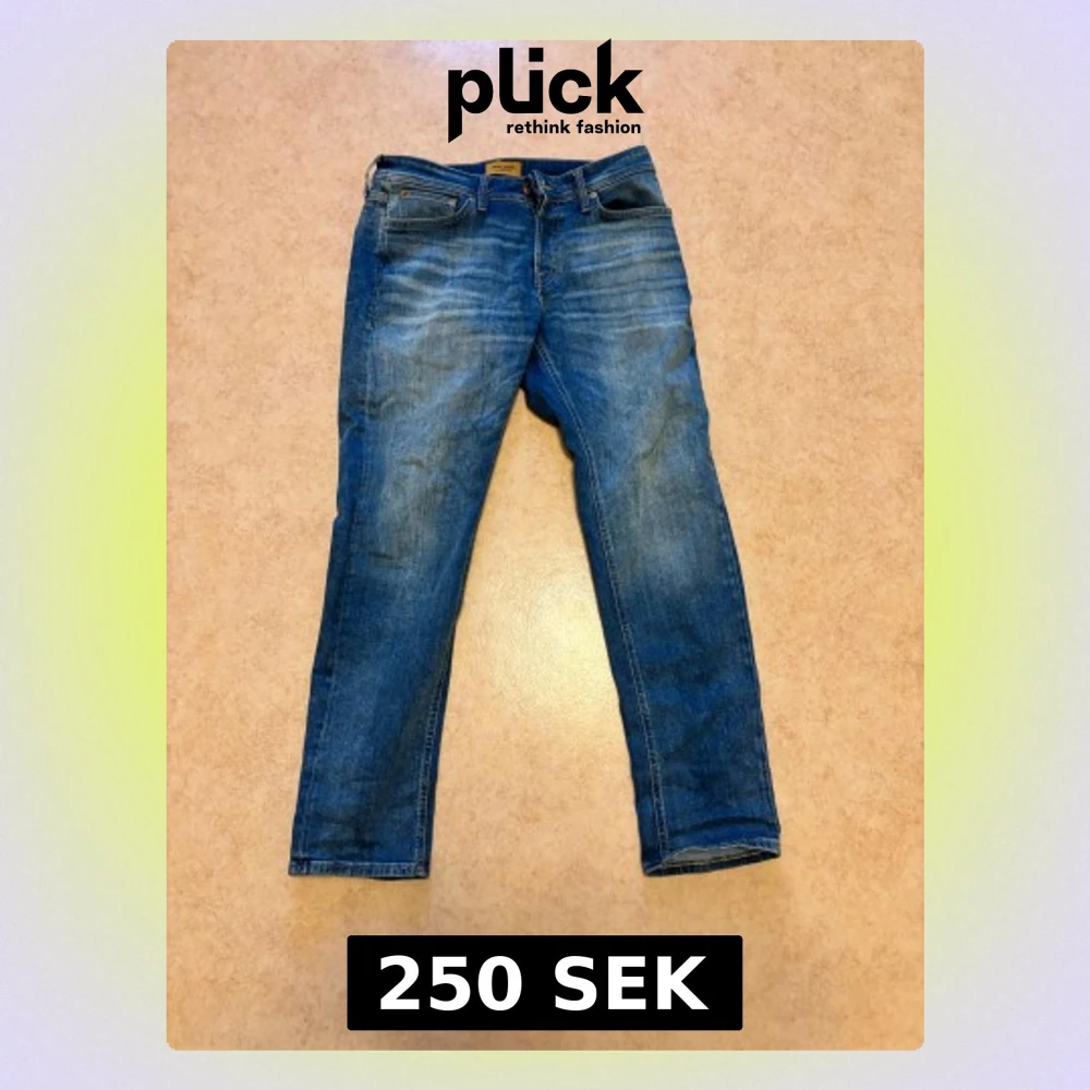 Säljer ett par Jack & Jones jeans med snyggt slitna detaljer och fem fickor. Jeansen har en smal passform och är tillverkade i mjukt denimtyg med lite stretch för extra komfort. Nytt pris 900kr