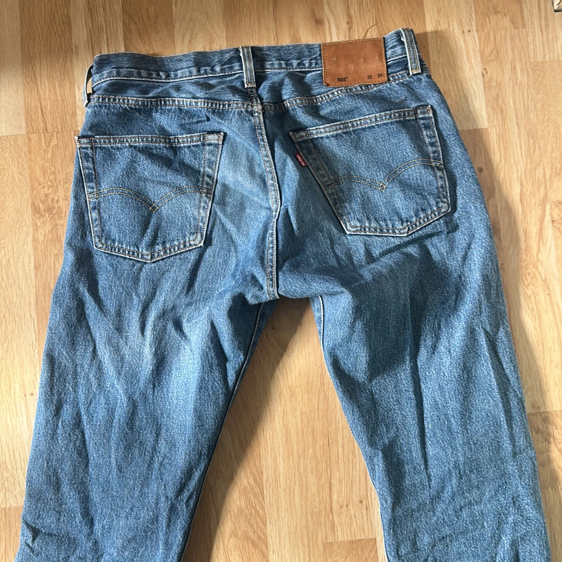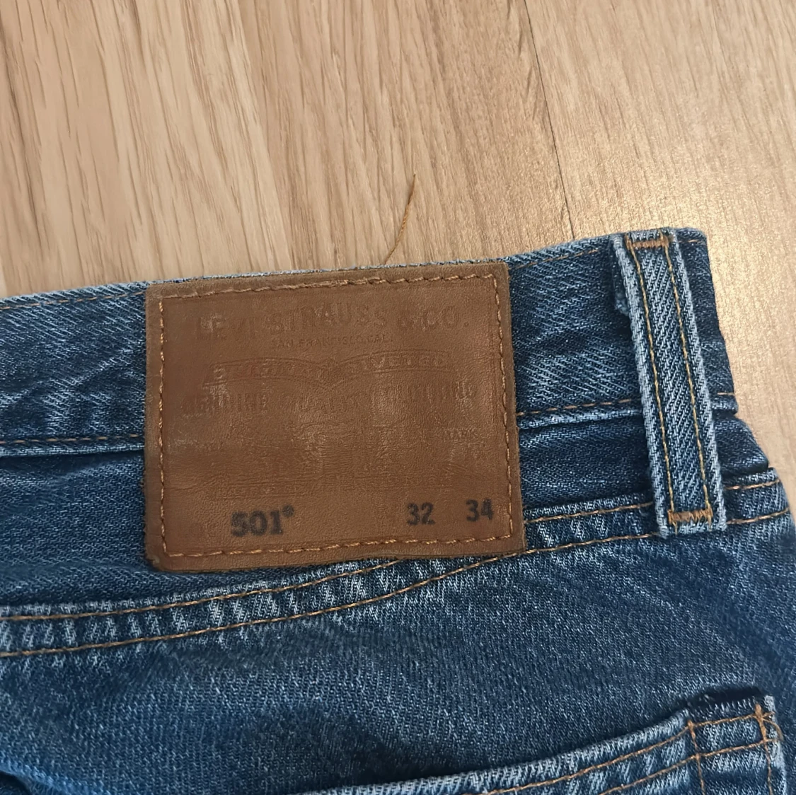 Klassiska blå Levi's 501 jeans med rak passform och knappgylf. Jeansen har fem fickor, tydliga sömmar och den ikoniska läderpatchen bak i midjan. Tillverkade i slitstarkt bomullsjeans, perfekt för en avslappnad och tidlös look.
