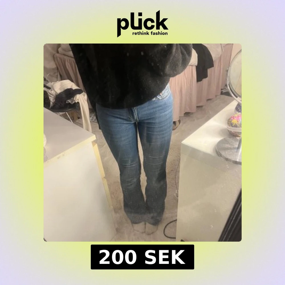 Superfina bootcut jeans från Gina Tricot! Storlek 32. Lite slitningar längst ner men inget man lägger märke till. Mid-waist
