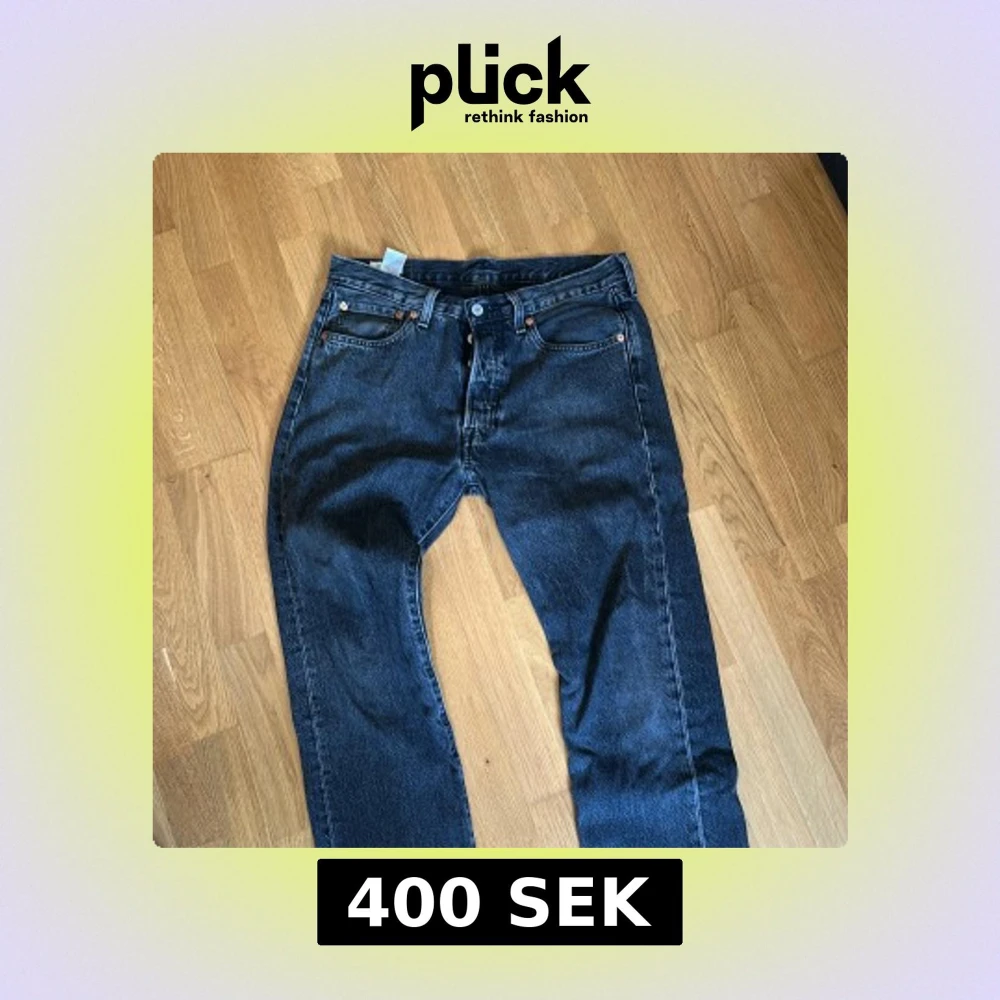 Säljer ett par klassiska Levi's 501 jeans i mörk grå färg i väldigt fint skick. Perfekt för dig som gillar tidlös stil och vill ha ett par jeans med autentisk känsla.