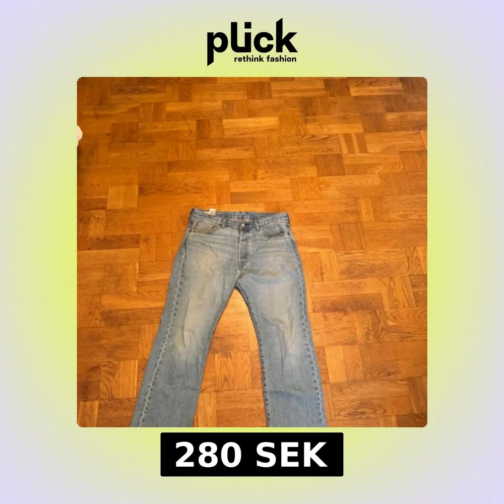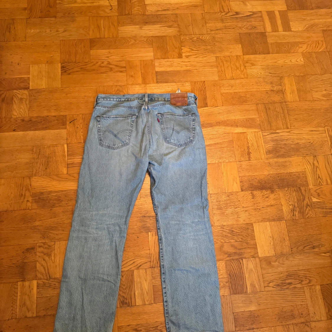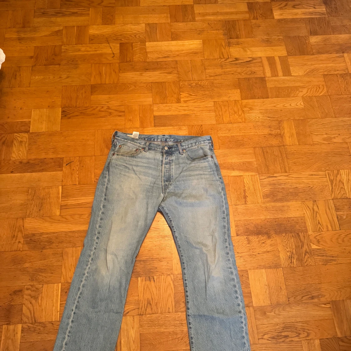 Klassiska Levi's 501 jeans i ljusblå tvätt med rak passform. Byxorna är i bra skick. Nypris ca 1000kr