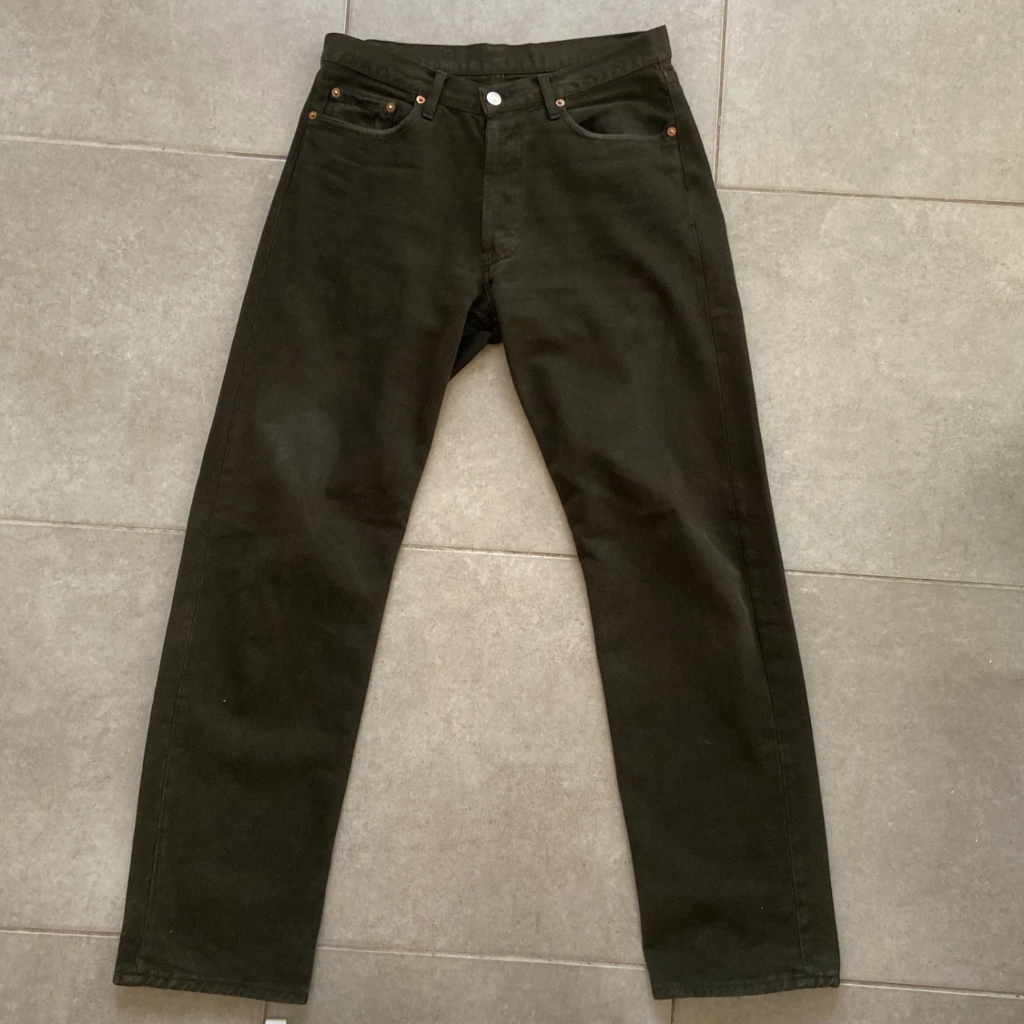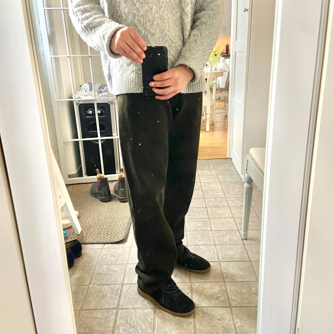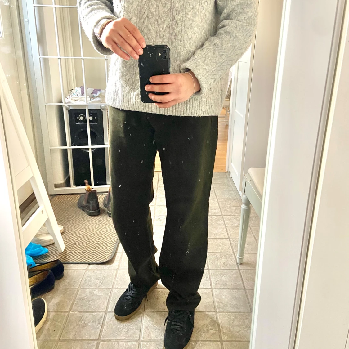 Jeans mörk gröna W36 L34. Jag är 173cm och jeansen är Lose fit och passa personer som är några cm länge än mig.