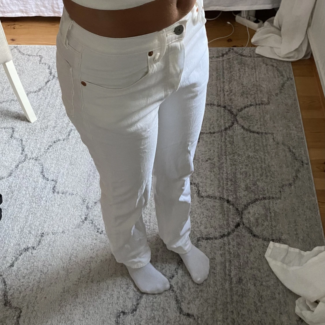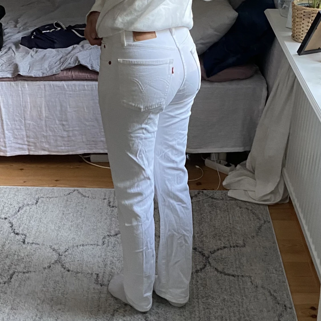 Suuuper fina vita straight jeans från Levis, nästan oanvända! +frakt💗 (skriv för fler frågor) Det står ej på byxorna vad det är för st men jag är 168 och brukar ha 34 i jeans och de passar mig.