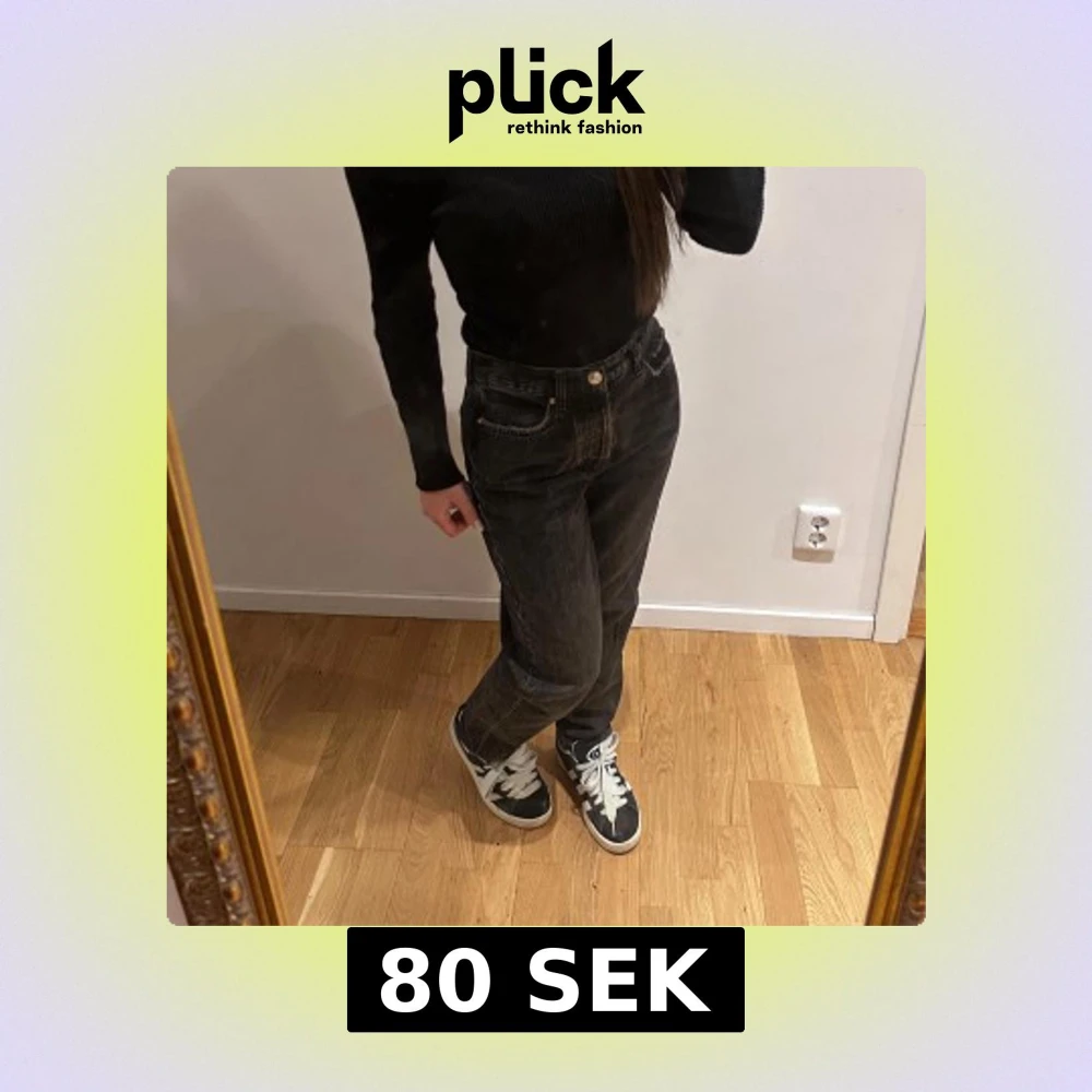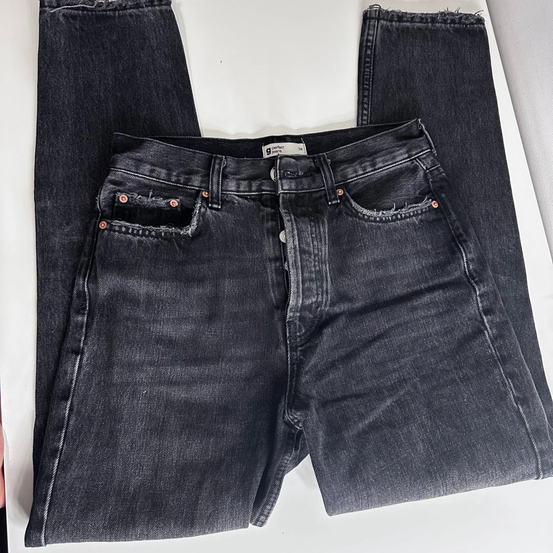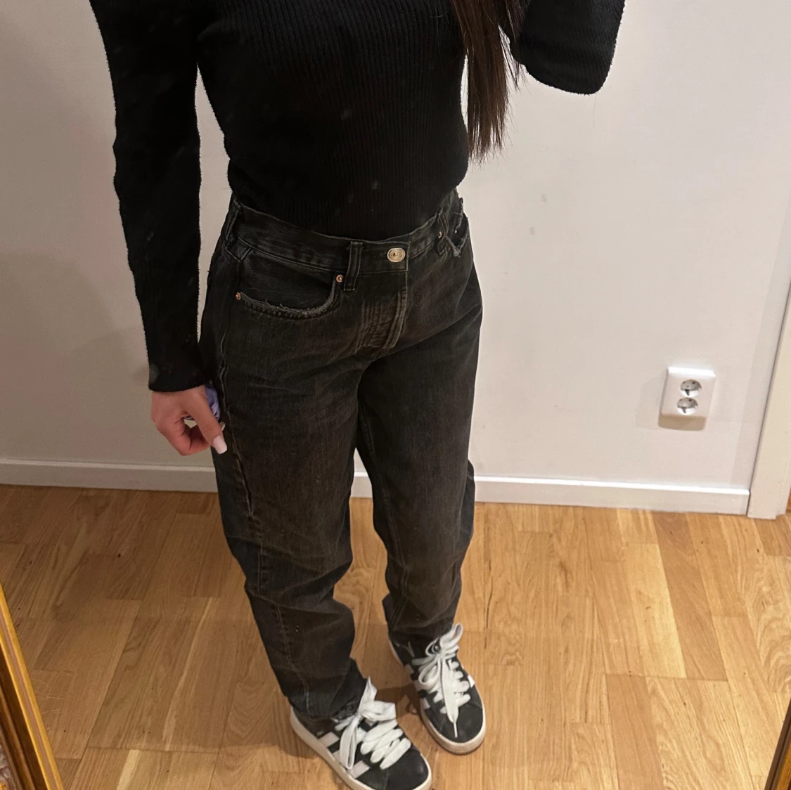 Svarta högmidjade jeans i storlek 34 från Gina tricot.