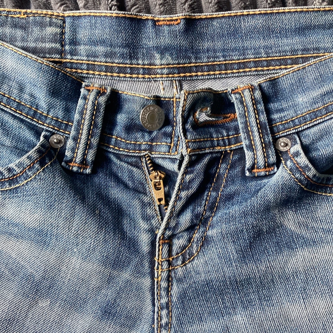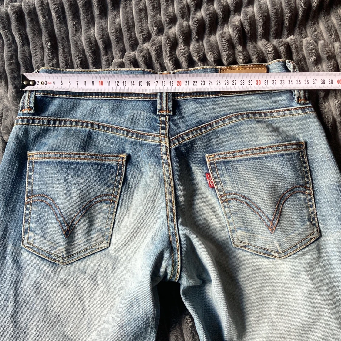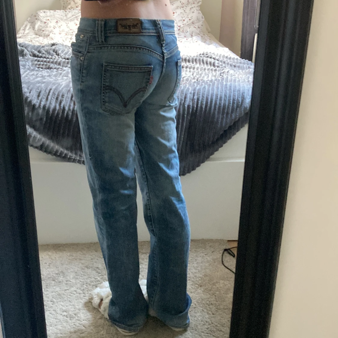 Säljer ett par klassiska Levis jeans i ljusblå tvätt med låg midja och bootcut-ben. Jeansen har fem fickor, dragkedja och Levis-logga på bakfickan. Perfekta för dig som gillar en avslappnad och tidlös look. Obs blixtlåset har hoppat ut men går att laga!