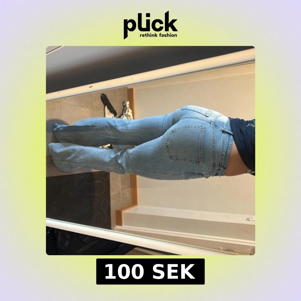 Säljer ett par ljusblå H&M jeans med bootcut passform och klassisk femficksdesign. Jeansen har hög midja och raka ben som blir vidare nertill. Tillverkade i mjukt denimtyg med bälteshällor och dragkedjegylf. Perfekta för en chill och trendig look.