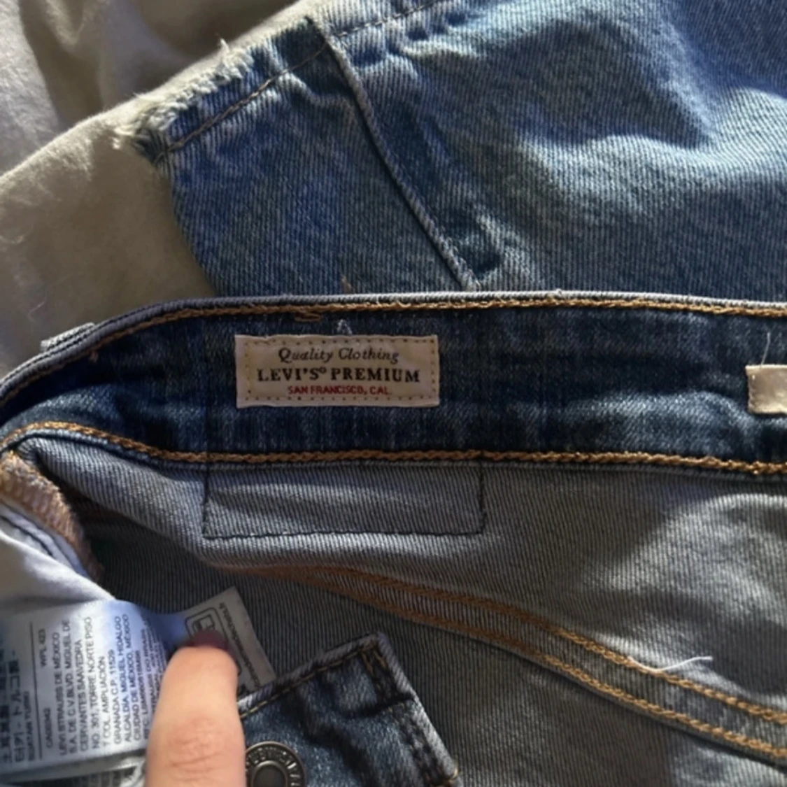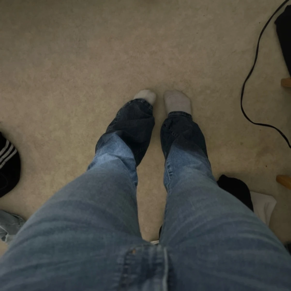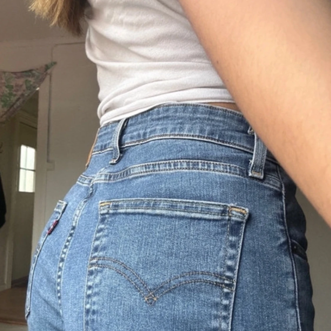 Säljer ett par klassiska blå jeans med hög midja. De har en straight passform och är perfekta för en avslappnad stil. Jeansen har fem fickor och en knappgylf. Dom är alldeles för långa för mig. Har vara använt dom 2 gånger.