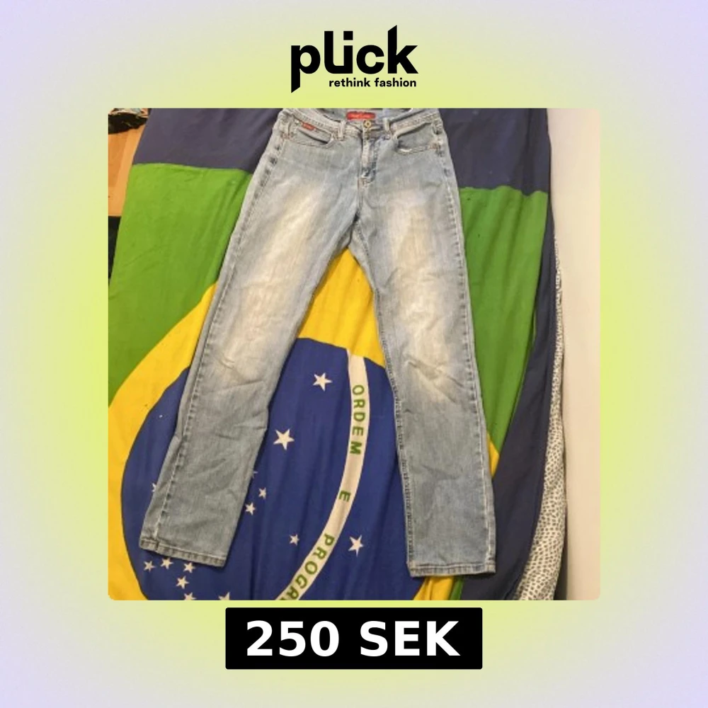 Säljer ett par klassiska ljusblå Levis 501 jeans med raka ben och normal passform. Jeansen har fem fickor, knappgylf och subtila slitningar för en avslappnad look. Perfekta till vardags och passar till det mesta.