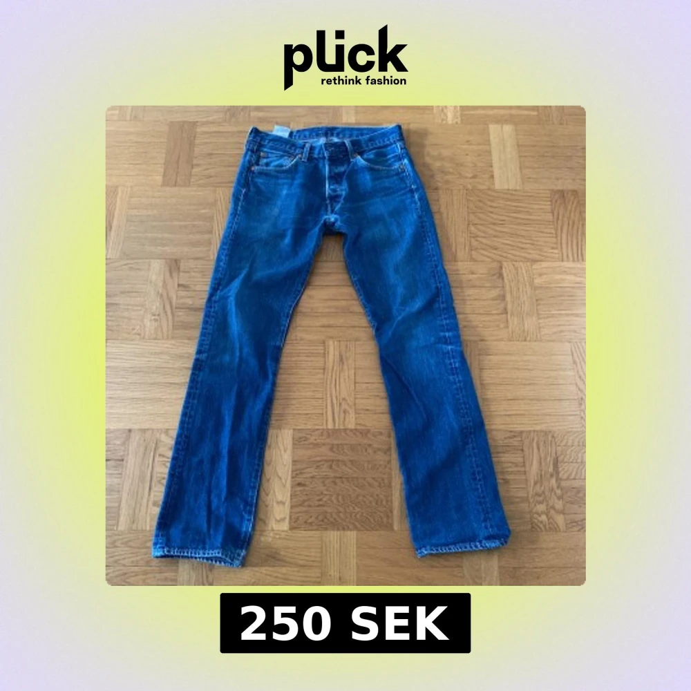Säljer ett par klassiska blå Levi's Premium jeans med raka ben och normal passform. Jeansen har fem fickor, knappar i gylfen och tydliga Levi's-detaljer som läderpatch och röd etikett bak. Perfekta för en stilren och tidlös look.