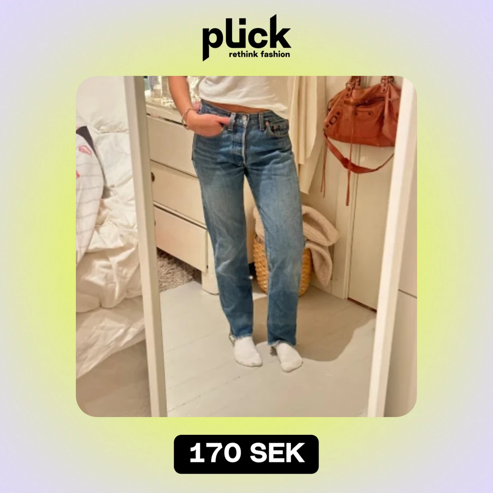 Så snygga vintage Levis 501! Mindre i storlek än nutidens motsvarande, vilket är bra att ha i åtanke! W27 L34 men avklippta av ägaren innan mig. Midjemått ca 33cm (66cm) Innebenslängden ca 71cm, passar mig som är 162cm😇