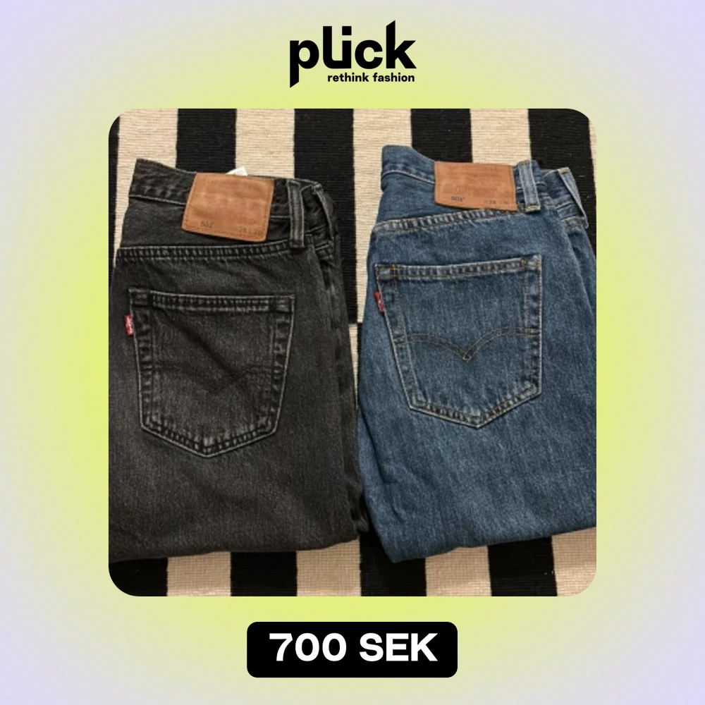 Två par Levis 501 för endast 700kr tillsammans. Båda är i bra skick och i storleken 28W 30L. 350 kr om man vill köpa styckvis. Har du funderingar så är de bara att höra av dig👍