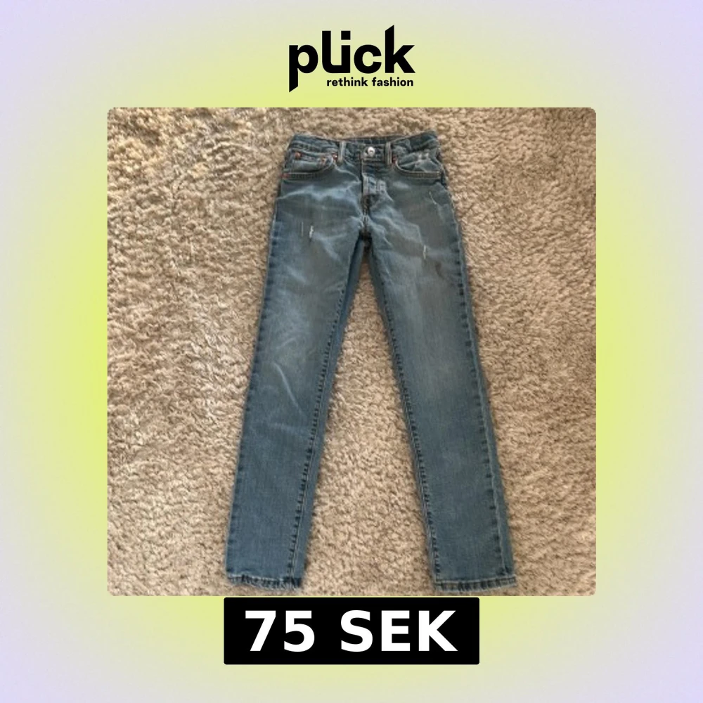Klassiska Levis 501 jeans i en ljusblå tvätt. De har en rak passform och är högmidjade med knappgylf. Perfekta för en avslappnad stil. Har en fläck på benet, se bild