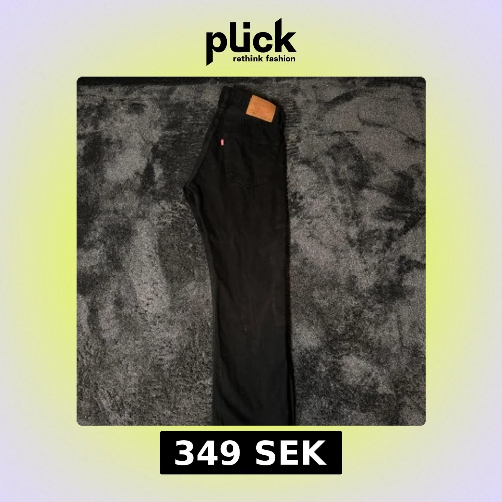 Snygga svarta Levis 501 jeans med klassisk design. De har en rak passform och är tillverkade i slitstarkt denim. Perfekta för en stilren look. Byxorna är storlek 29/32, den är i nyskick. Skriv för mer info