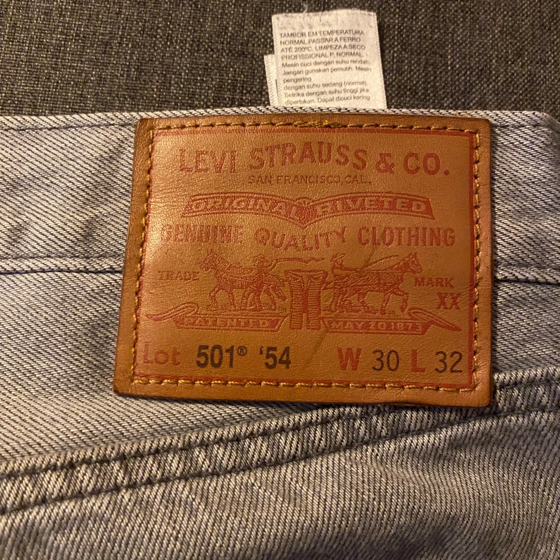 Säljer ett par gråa Levis 501or i storlek W30 L32| Demär i bra skick och är straight fit| Skriv privat för bilder och frågor.