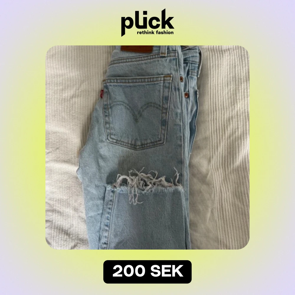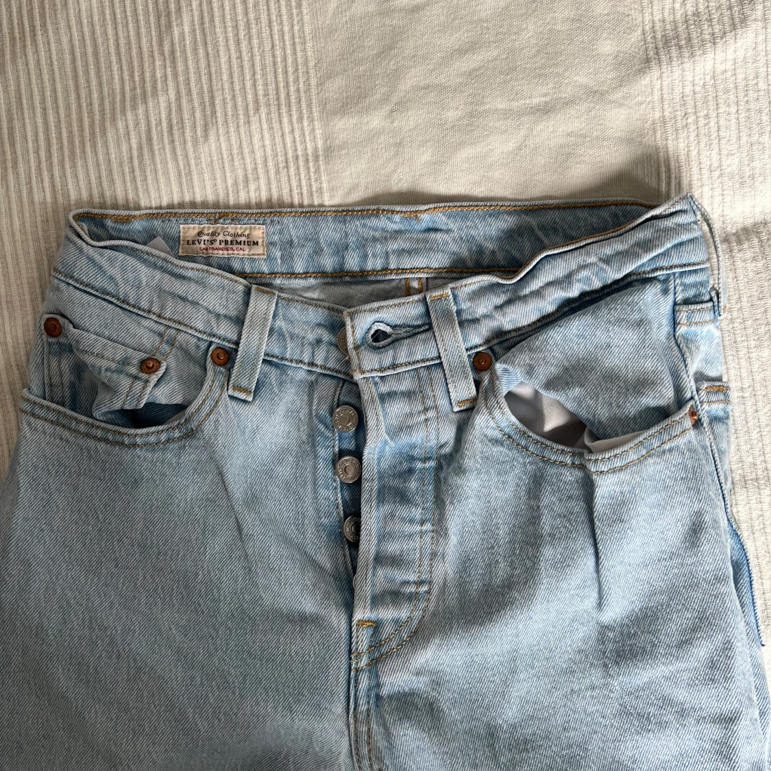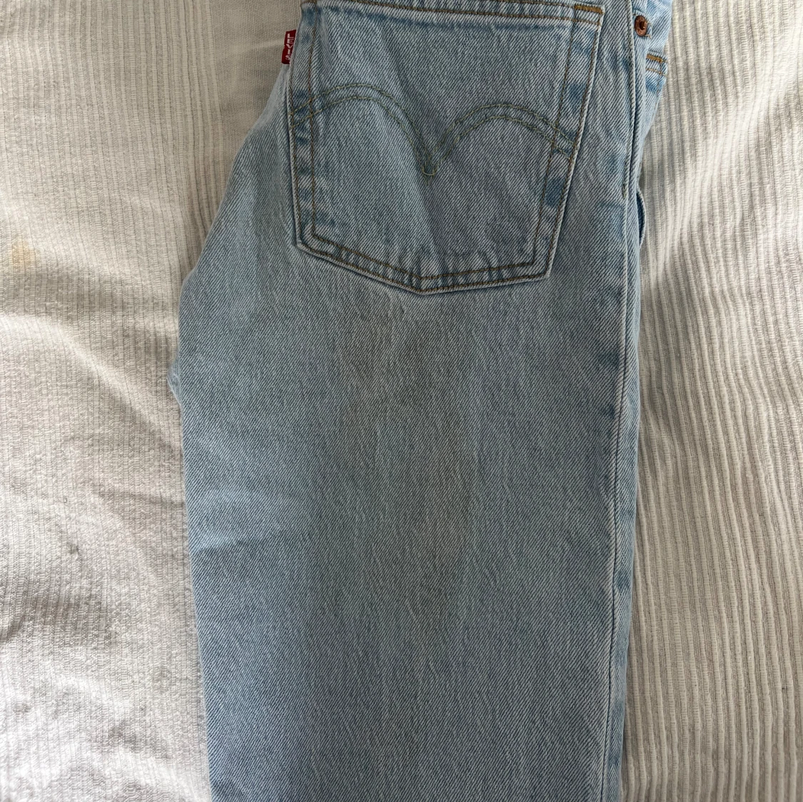 Levis 501 i ljus tvätt. Passar i längd dig som är 1,65 eller kortare, jag är 1,63 som referens. W24. Supersnygga men kommer tyvärr inte till användning. Svagt missfärgade på baksidan, se andra bilden men det är inget som syns