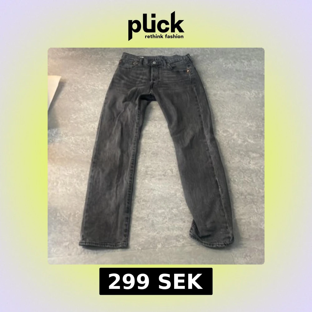 Klassiska svarta Levis 501 jeans med rak passform och fem fickor. Jeansen har en mörk tvätt och är tillverkade i robust denim. Perfekta för dig som gillar en tidlös och avslappnad stil.