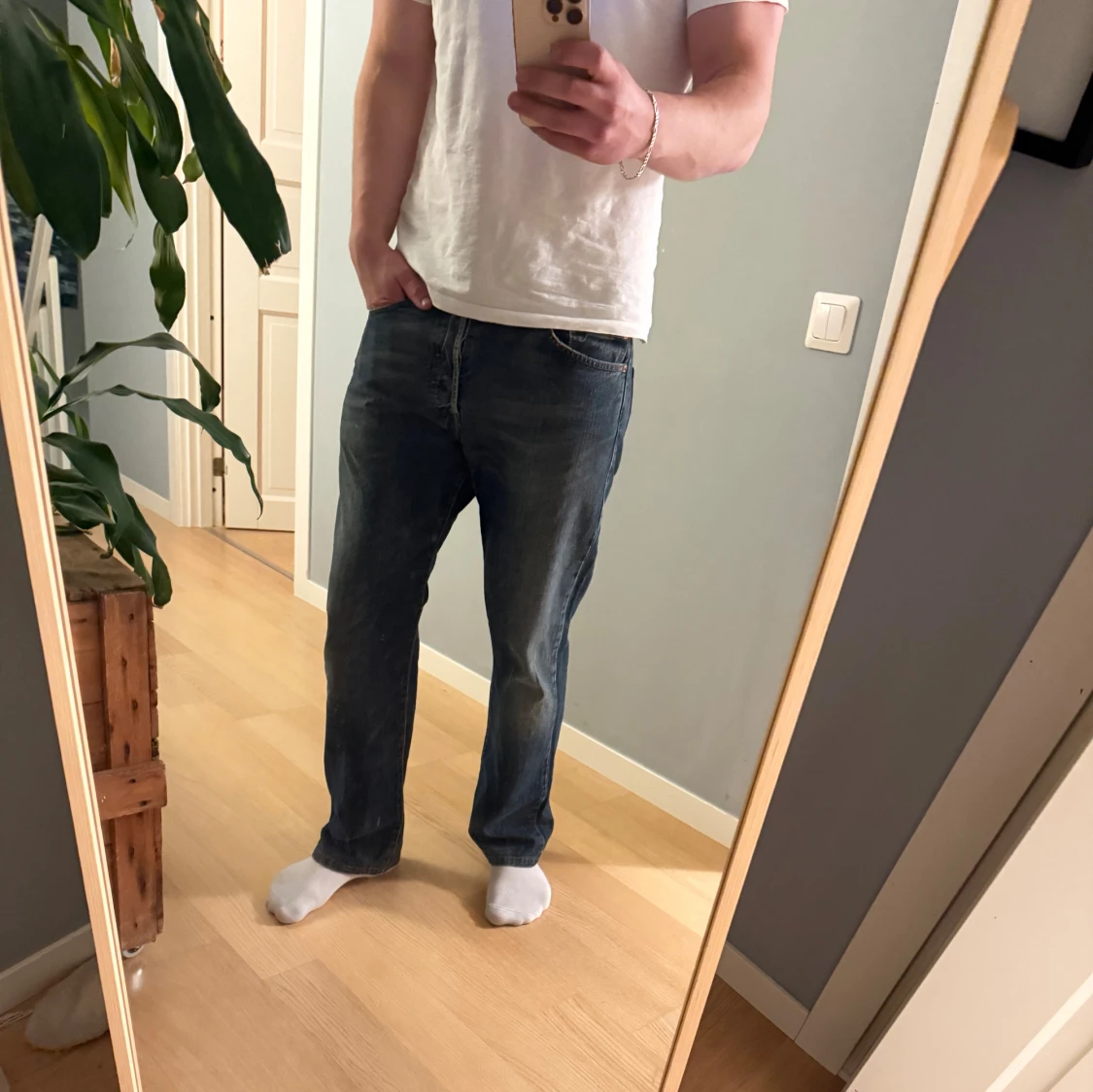 Tjena! Säljer dessa riktigt snygga Levis 501 jeans, jeansen är i fint skick och är i storlek w33/L32, passar mig som är 186, hör av dig vid funderingar!🙌