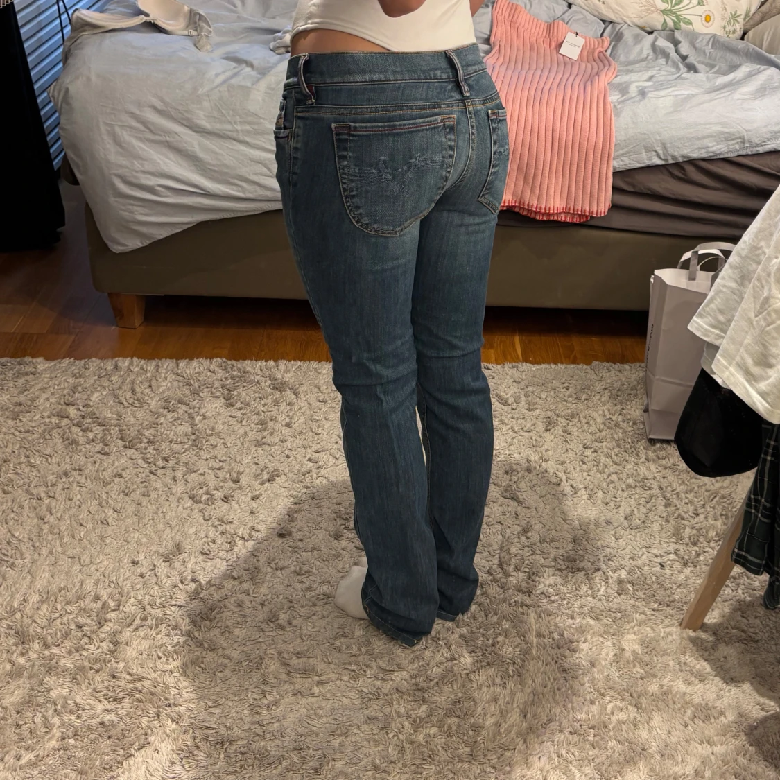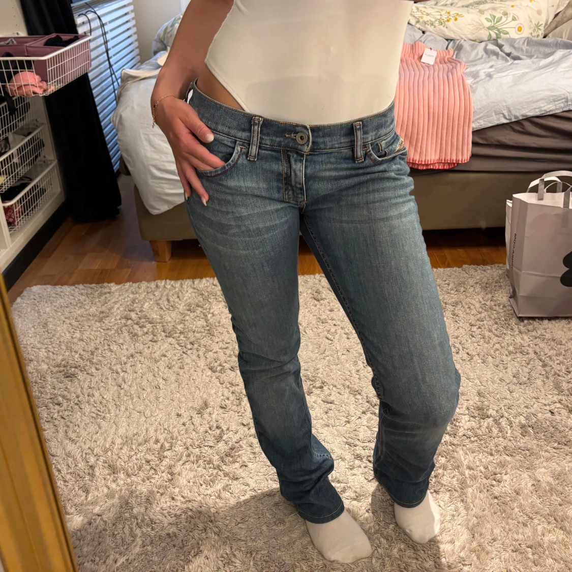 Säljer ett par klassiska Levis 504 jeans i blå tvätt med låg midja och raka ben som är jätte fint skick men har själv tröttnat på dom och säljer därför dom nu.