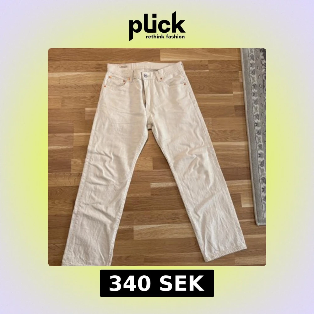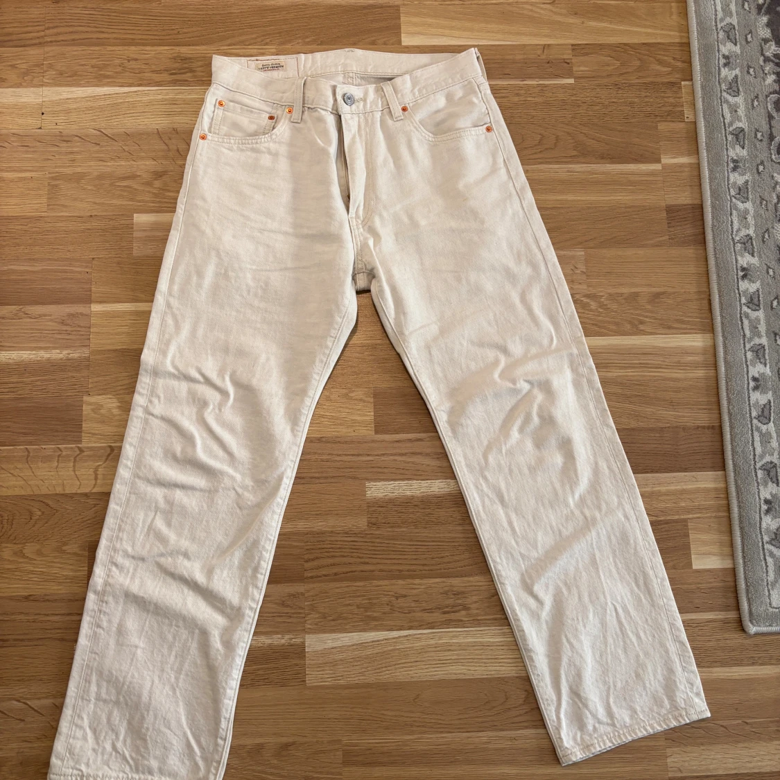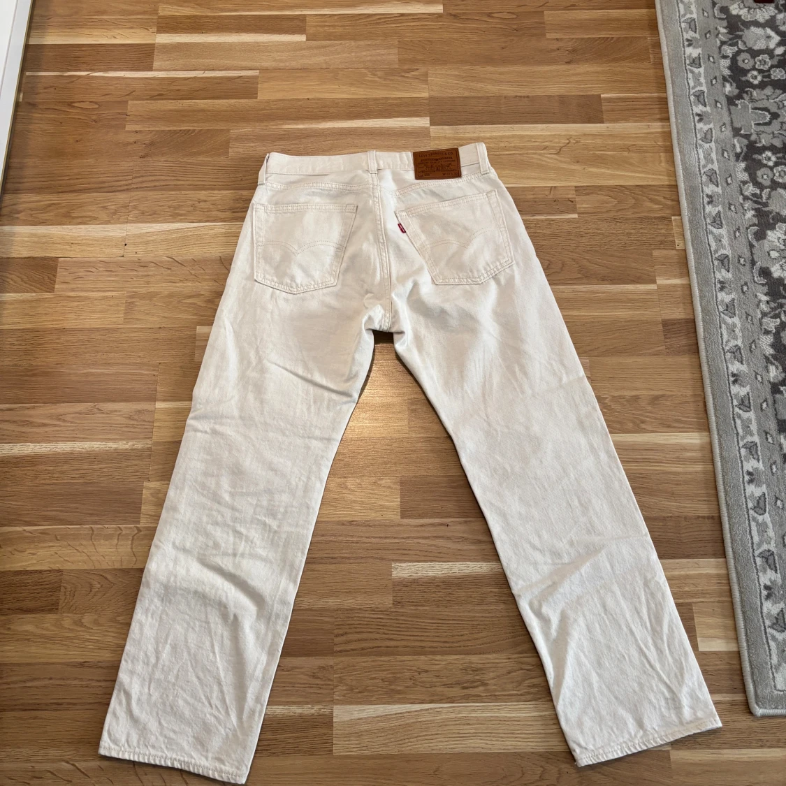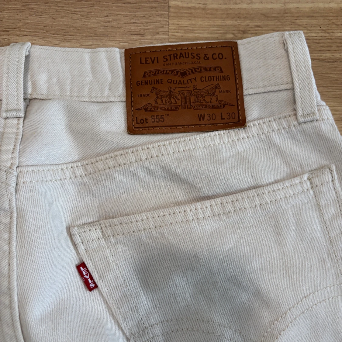 Snygga vita Levi's Premium 555 jeans med klassisk röd Levi's-tag och läderpatch bak. Rak passform och femficksmodell i bomull. Perfekta för dig som gillar en clean och stilren look.