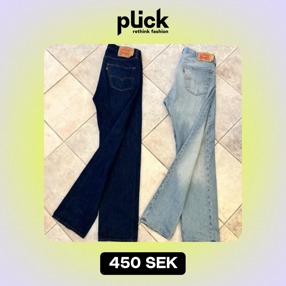 Levis 501 jeans, ett par mörkblåa och ett par ljusblåa. Storlek 34/34. 450 per jeans. 800 för båda jeansen.