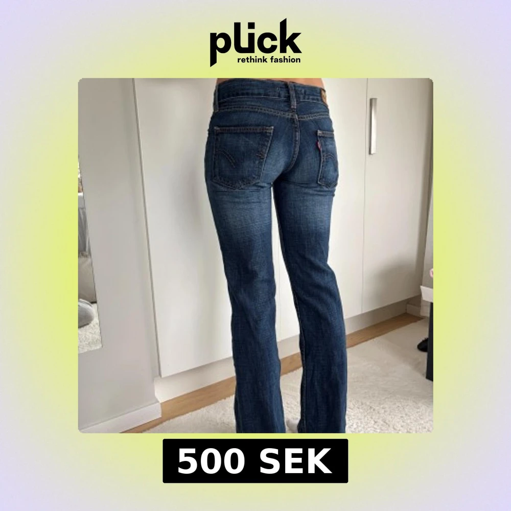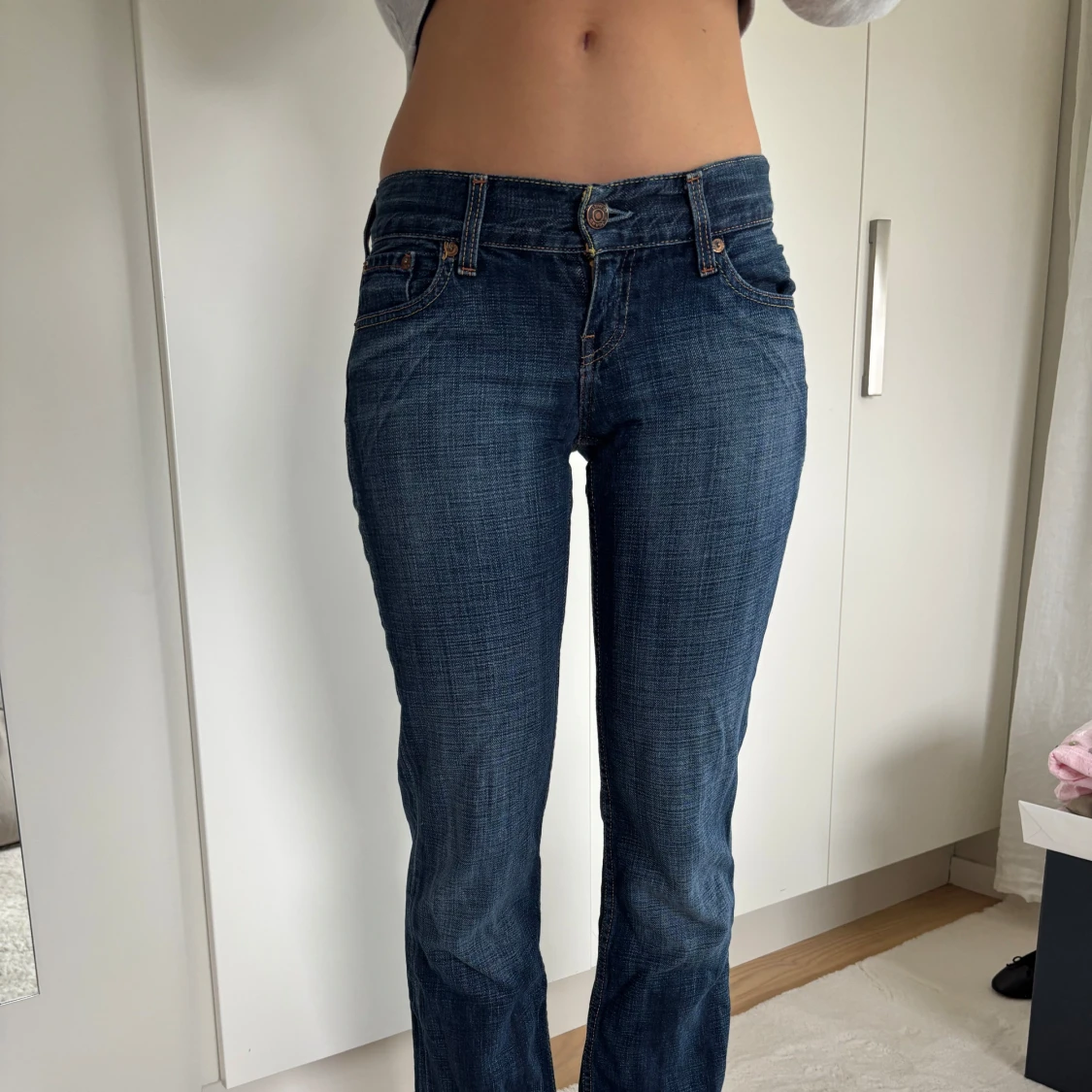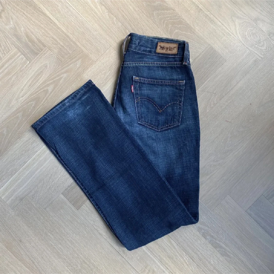 Mörkblå Levis jeans med bootcut passform och klassiska fem fickor.